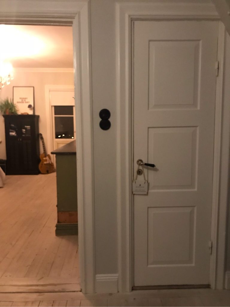 Sådär fick det alltså bli. Inte i vägen och lätt att komma åt om man skulle behöva hastigt rycka ut (vilket jag alltsom oftast behöver ett par gånger per dygn).