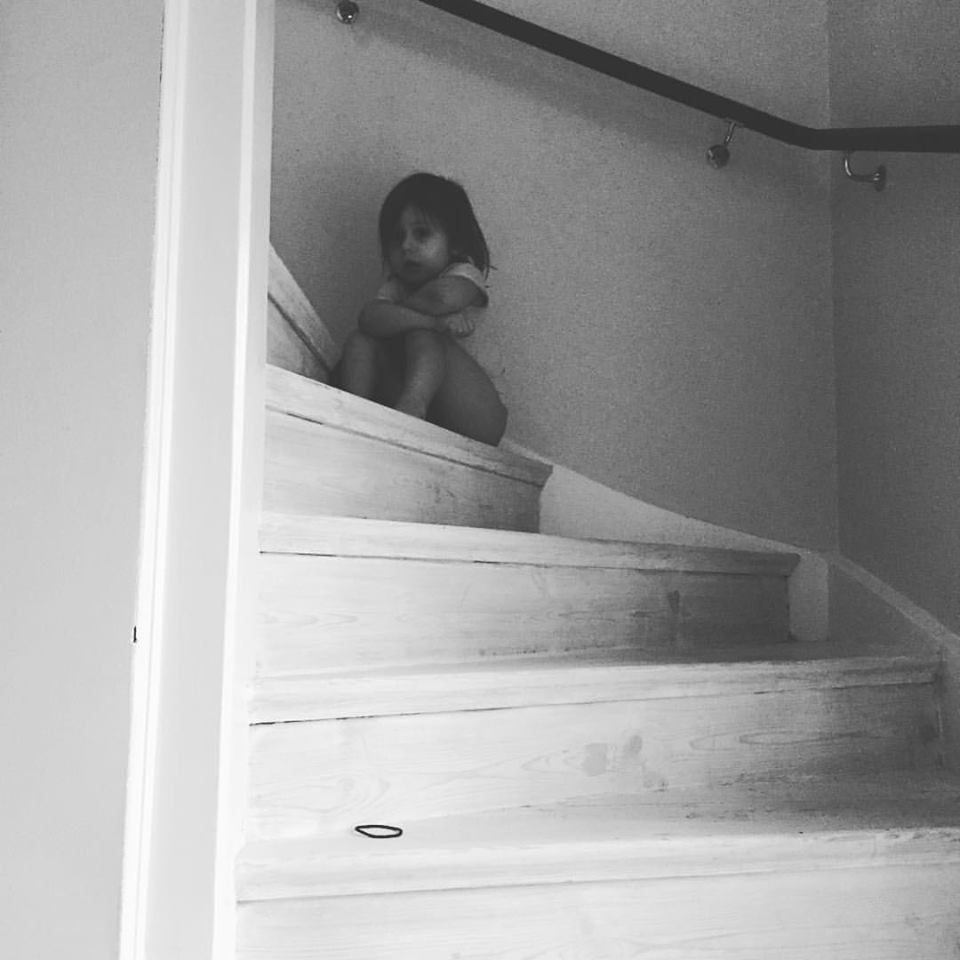 Till slut hittade jag henne i trappen och frågade vad hon gjorde där?