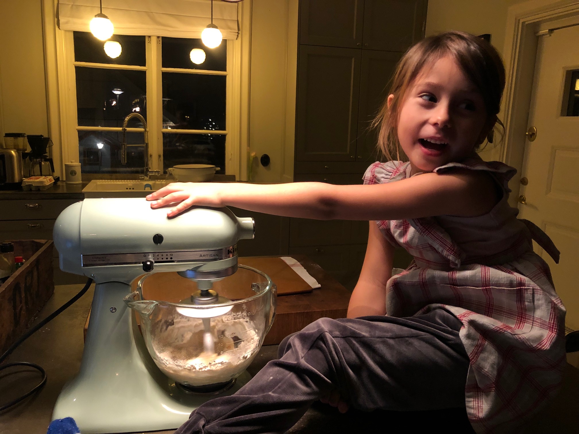 Amina älskar att baka och kan bemästra vår köksmaskin helt själv, vilket innebär att jag kan måla naglar/spela Crazy frog/Wordfeud och göra andra viktiga mammasaker under tiden.