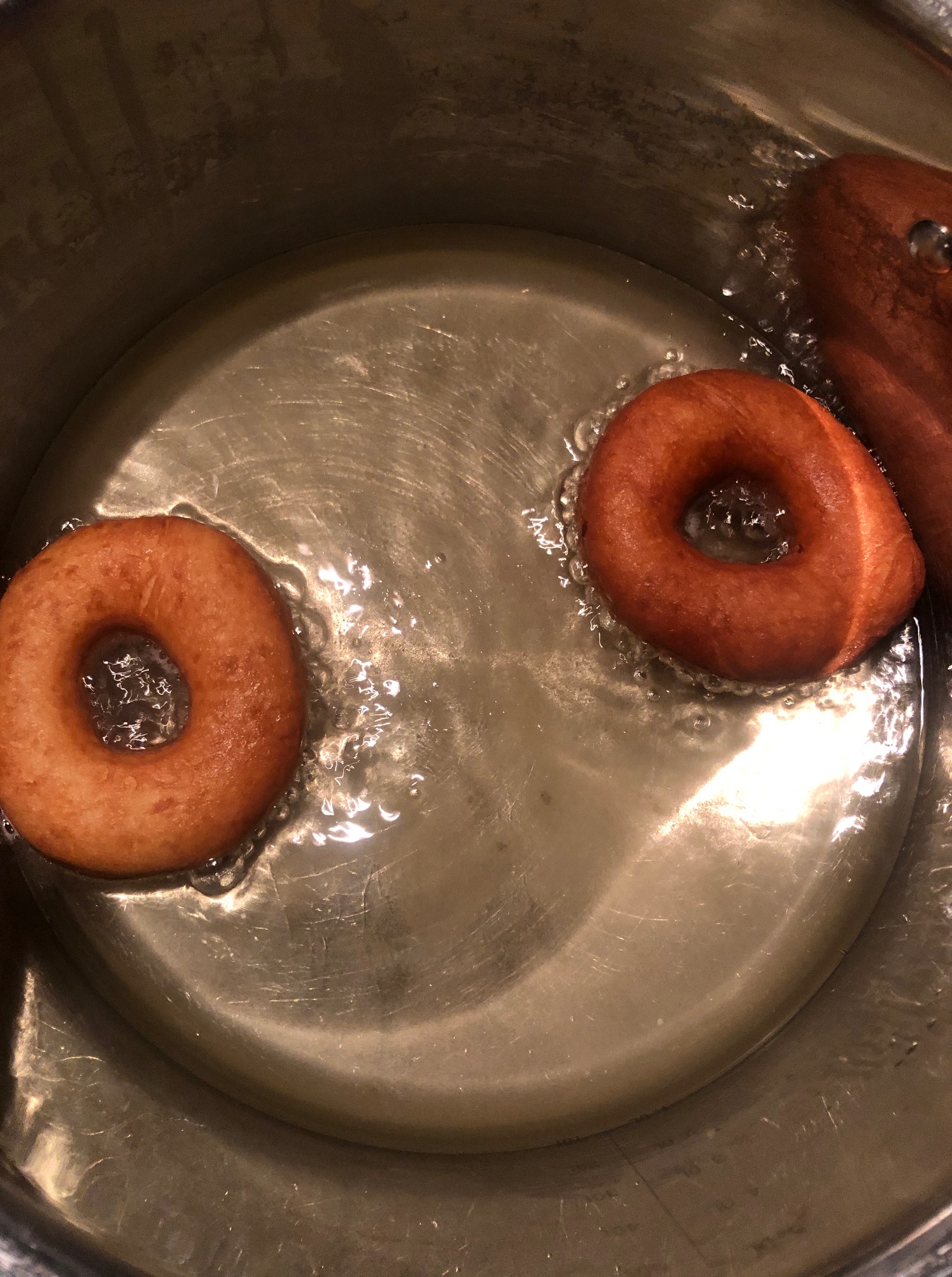 Värm oljan till 180 grader och fritera munkarna ca 1 minut på varje sida.