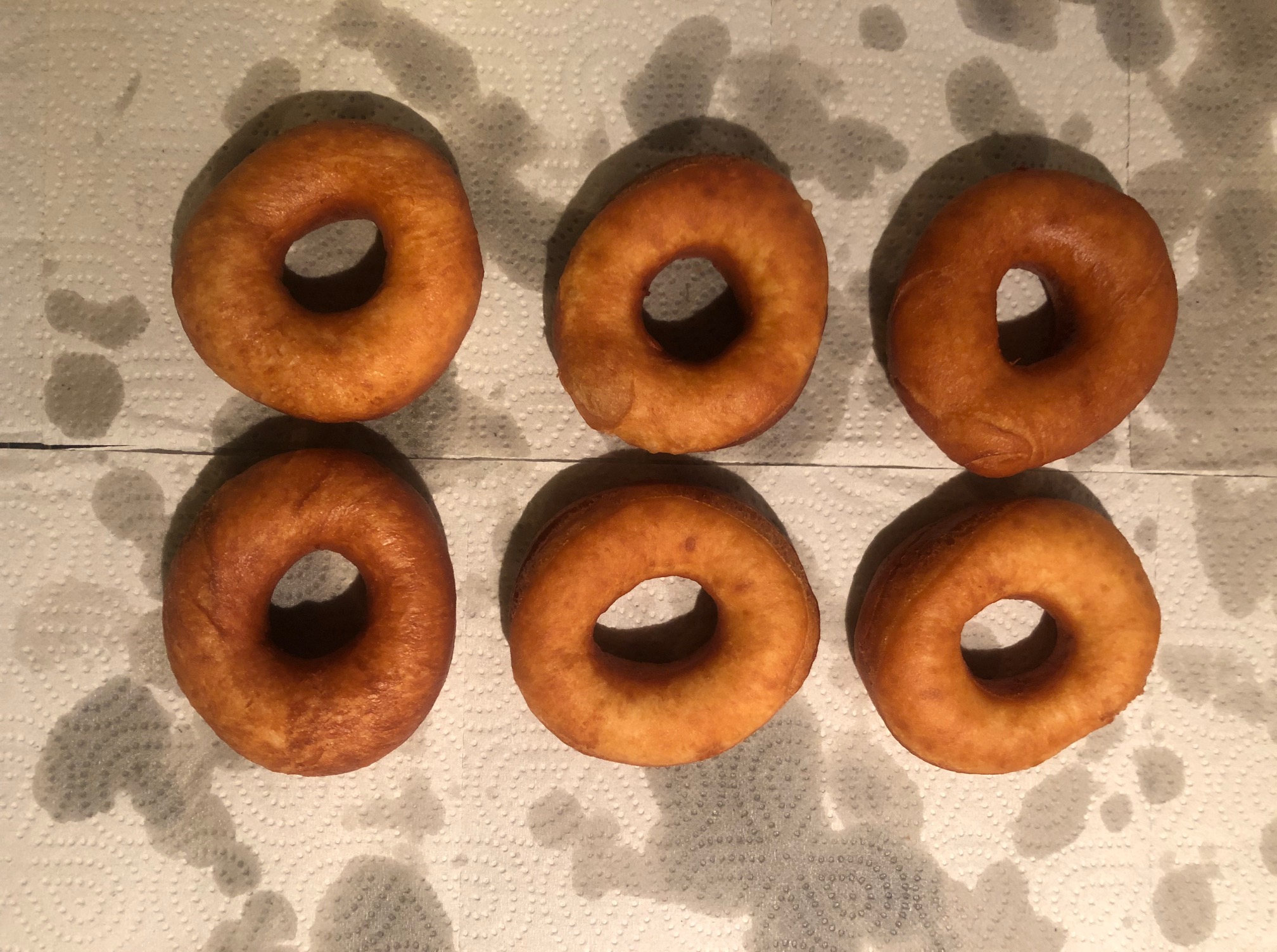 För att slippa få en kallsup av all överflödig frityrolja så lägg ringarna på hushållspapper för att rinna av.