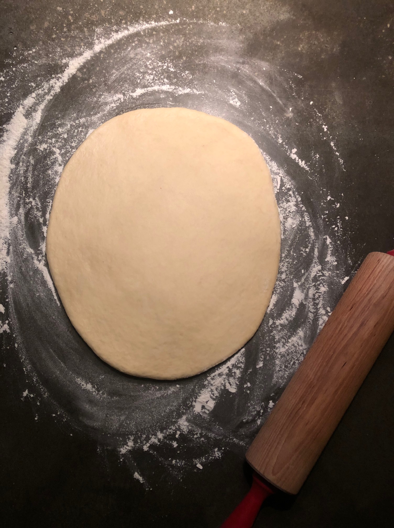 Här är den färdiga degen utkavlad till perfekt tjocklek.