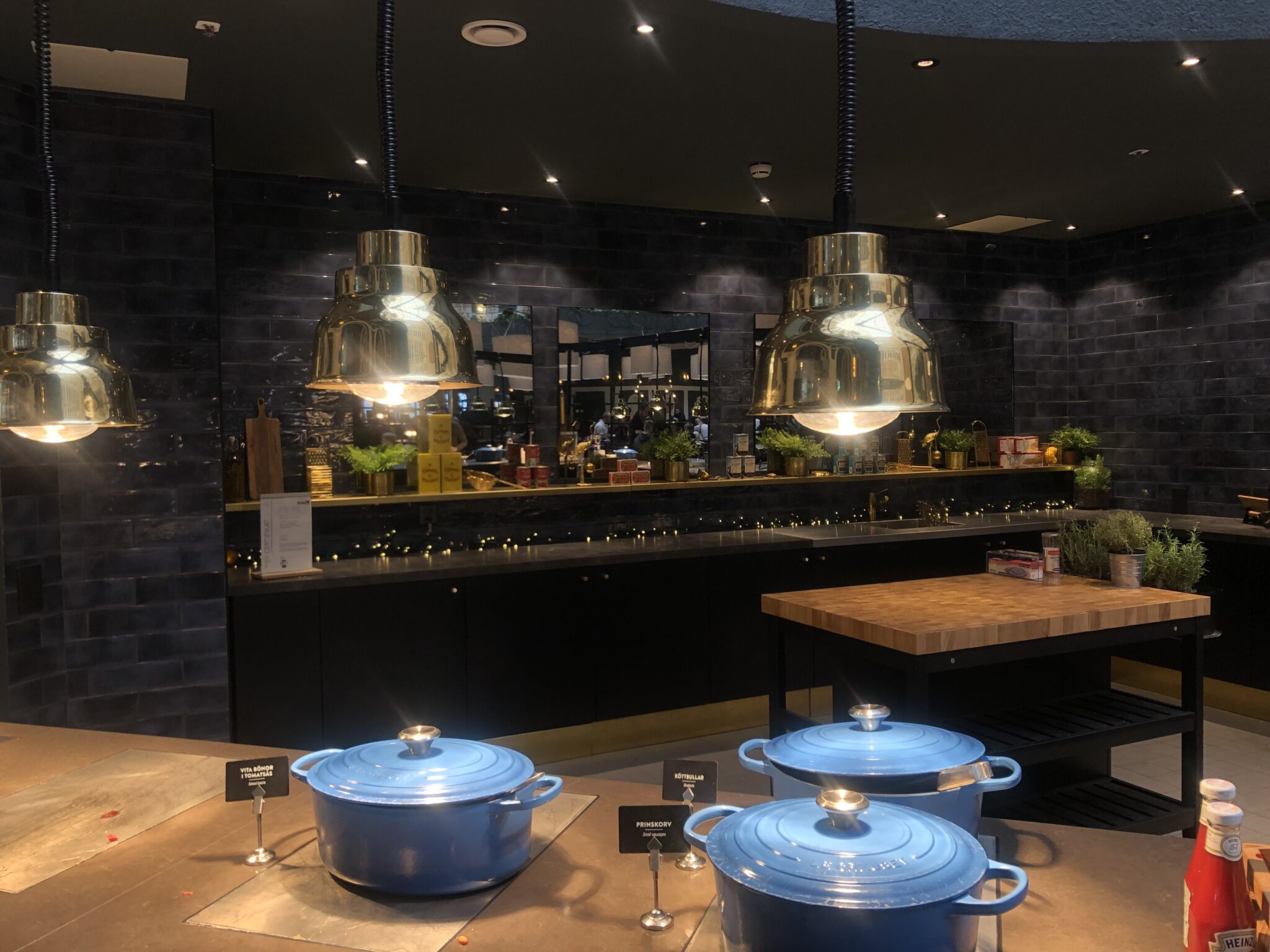Denna köksdel är så snygg så jag skulle vilja ta selfies därinne och fejka att det är mitt hemmakök. (Liksom: hej, ja välkommen till mitt blygsamma håll-käften kök i mässing och trend-kakel)