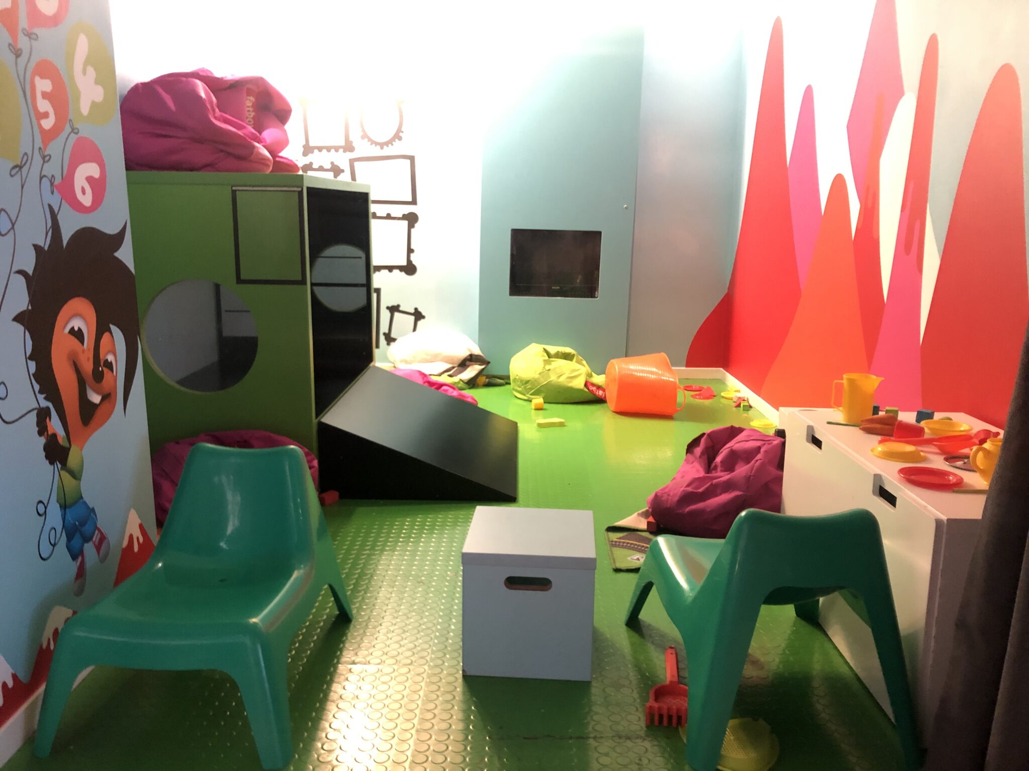 Hotellet har även en lekhörna med ett stort lekrum i anslutning till matsalen där man nästan oavsett vart man sitter kan ha uppsikt över barnen. utanför lekrummet finns ett ritbord och igår var temat Melodifestivalen.