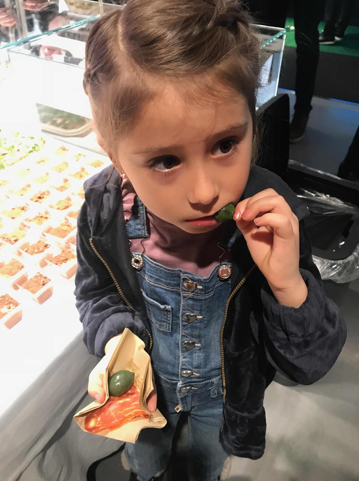 Amina var med mig och till hennes stora glädje fanns jordens största oliver från Eataly på plockmatsbordet.