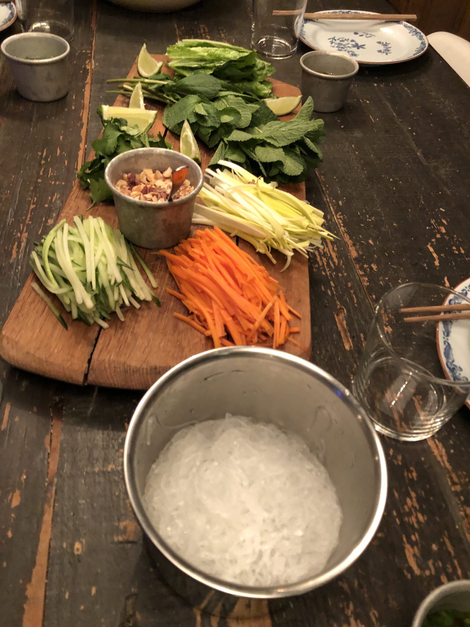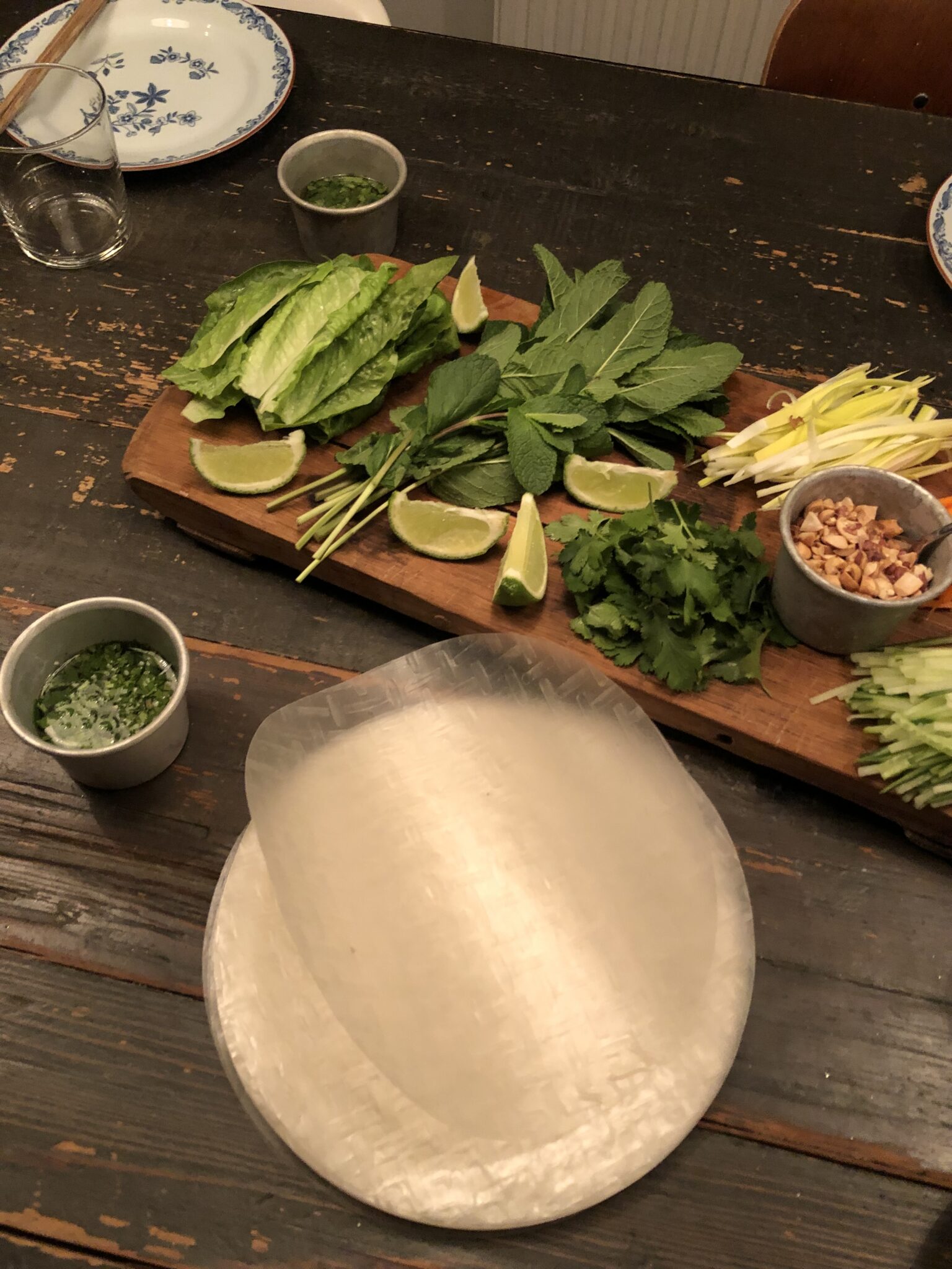 Det finns nåt extra himla härligt med att äta med fingrarna. Att doppa rispapper i varmt vatten och se det bli typ en manet i vattnet är också lite zen, tror jag.