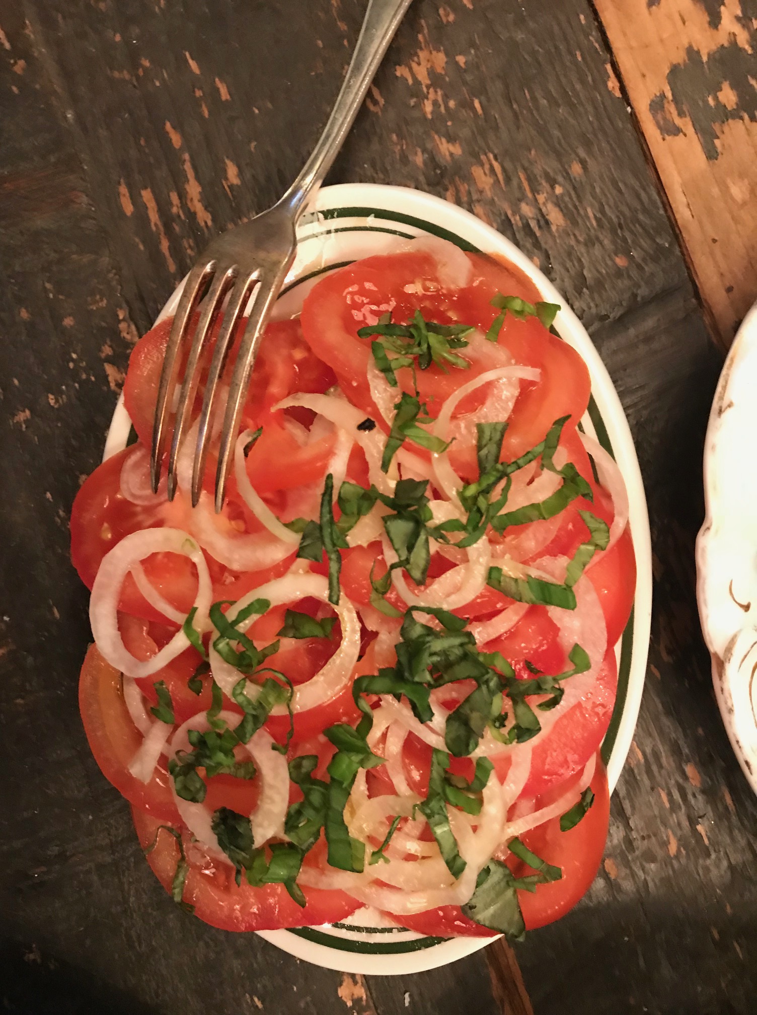 Skivade tomater med tunt skivad lök, olivolja och havssalt. Det är det godaste jag vet förutom att tomaterna nu inte smakar så mycket. Egentligen ska man baka dom i ugnen på låg värme några timmar för att få fram smaken rejält men vem orkar det när man är sjuk och döende av hunger?