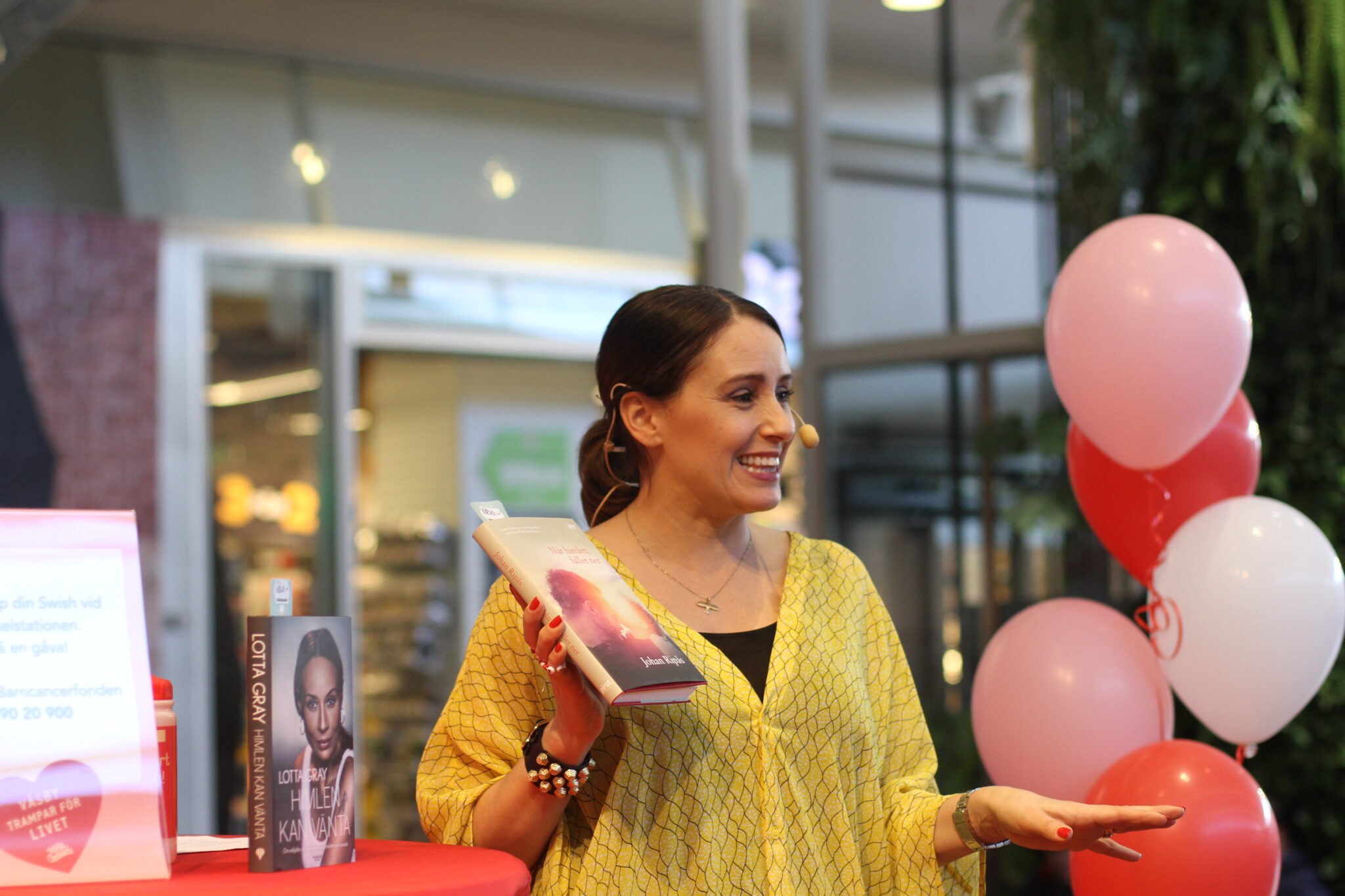 Världens vackraste mingeldrottning Lotta Grey kom också till Väsby Centrum för att prata om sin kamp mot cancer.