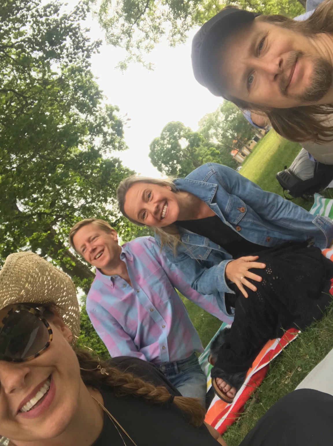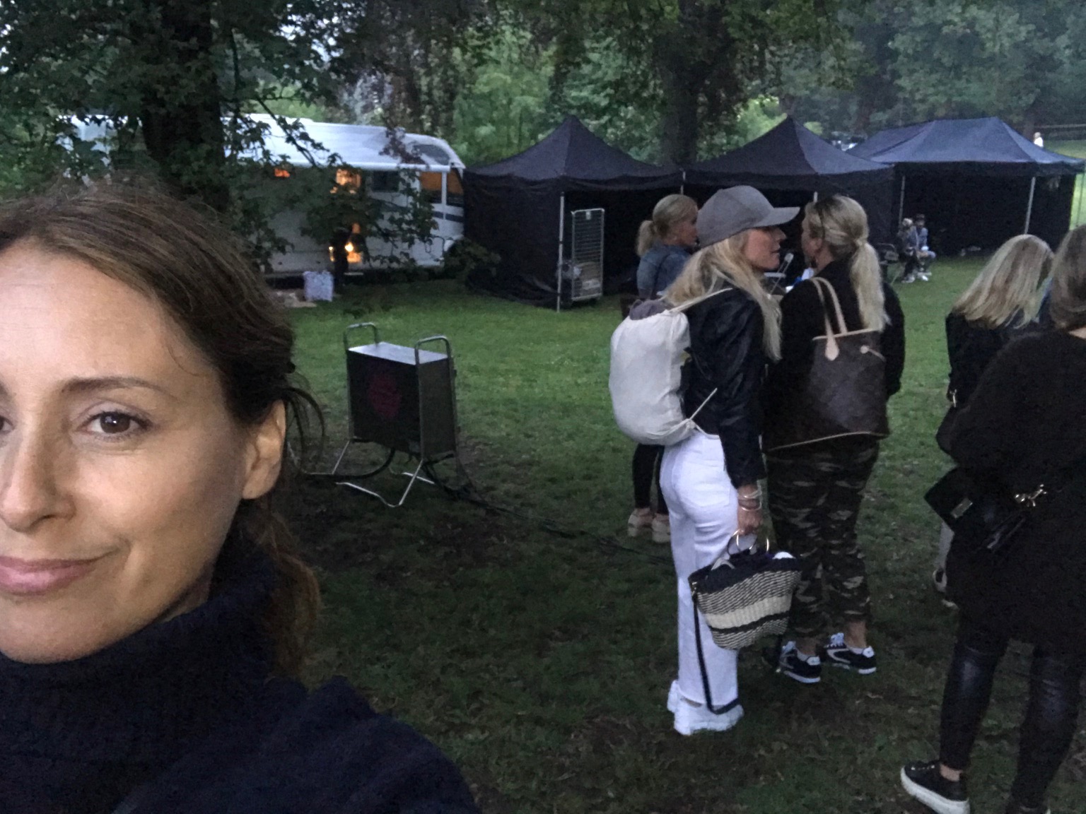 Här sitter vi i gräset på filtar och med picknickkorgar och njuter av skönsång. Amina lekte med Zoe i Carolas stora husbil som stod parkerad en bit bort och då och då såg jag två små barnhuvuden sticka upp från takluckan och gunga i takt till ”På egna ben” och ”Hunger”.