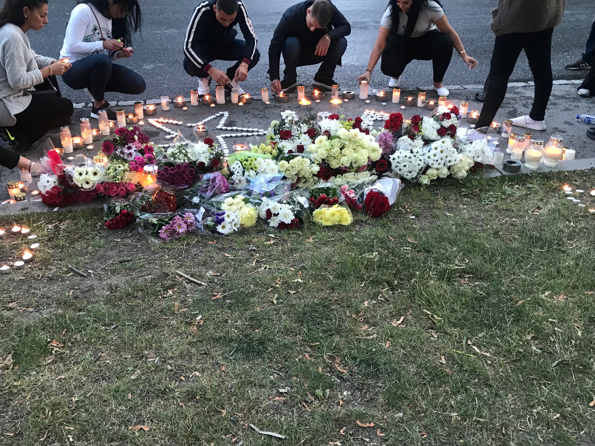 Den platsen är nu en mordplats och där satt familjemedlemmar och vänner och grät. Människor från området, mammor, pappor, äldre, ja alla gick ut och tände ett ljus eller bara stod stilla och grät. Precis som vi.
