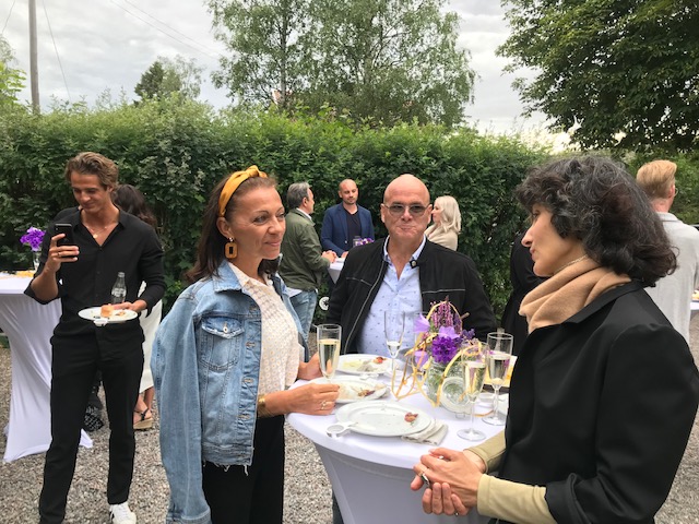 Ståborden är btw inhyrda för festen och tallrikarna, glasen och den lilla klämman med ringen som sitter på varje tallrik. Det är en världsbäst konstruktion som gör att man kan sätta sitt glas på tallriken och ha en hand fri att trycka i sig mat med.