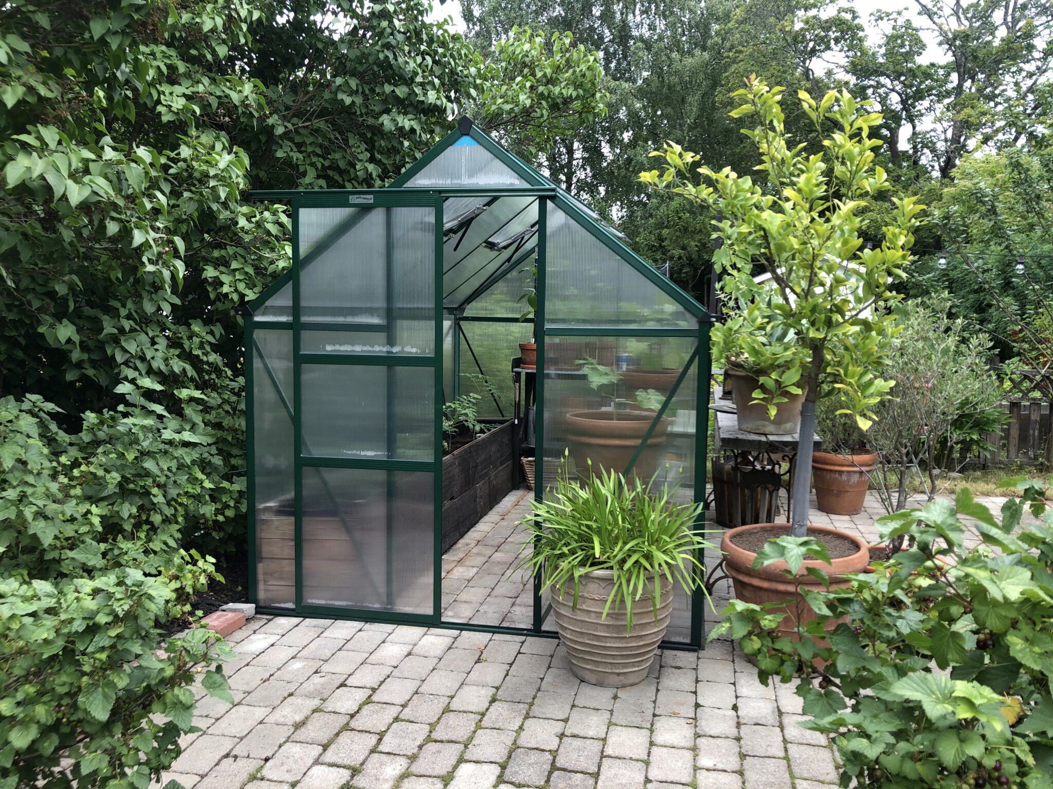 Mitt hetaste växthustips är att köpa ett i kanalplast för då slipper man oroa sig för att det som växer därinne bränns av solen.