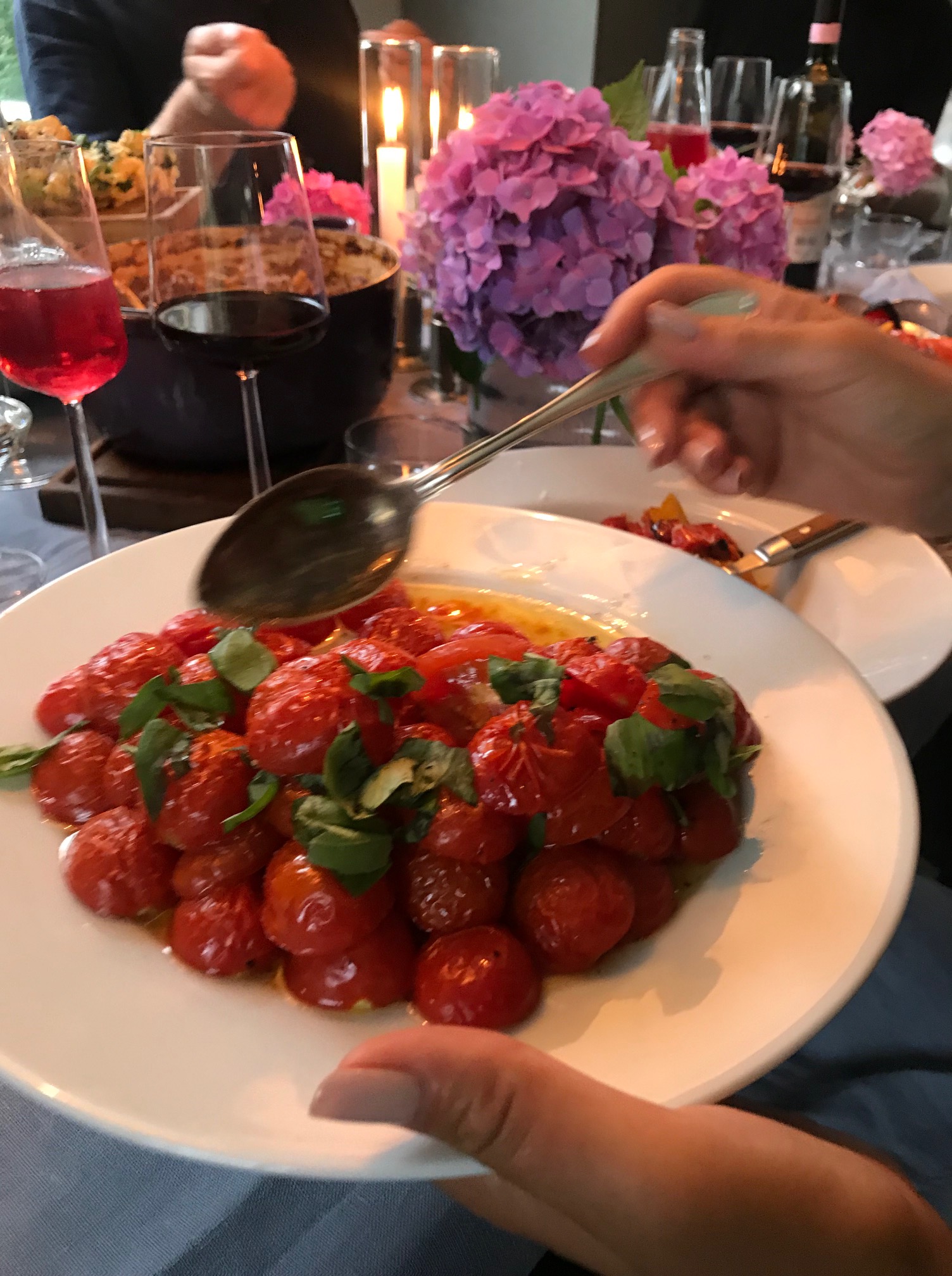 Till Bolognesen serverade vi ugnsbakade tomater, paprika i ugn, gremolata och focaccia.