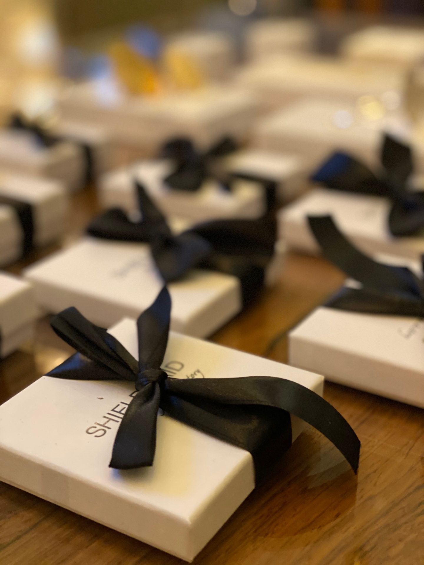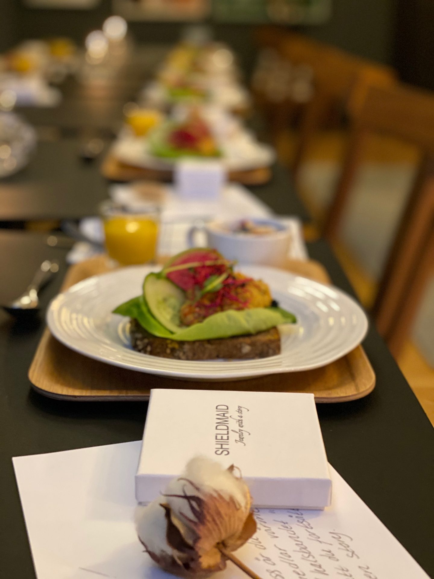 Det hade dukats fram en frukost signerad Franzén och vid varje tallrik låg ett personligt handskrivet kort och en lite gåva från Anna Odebäck som är skaparen av alla vackra smycken.