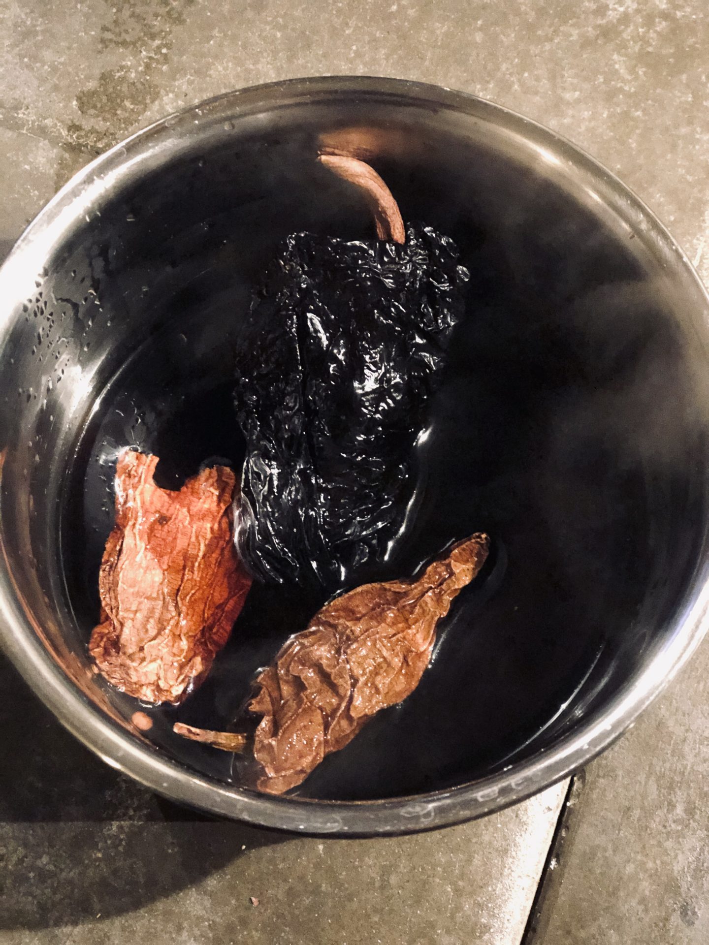Ancho och chipotlechili i varmt kaffe