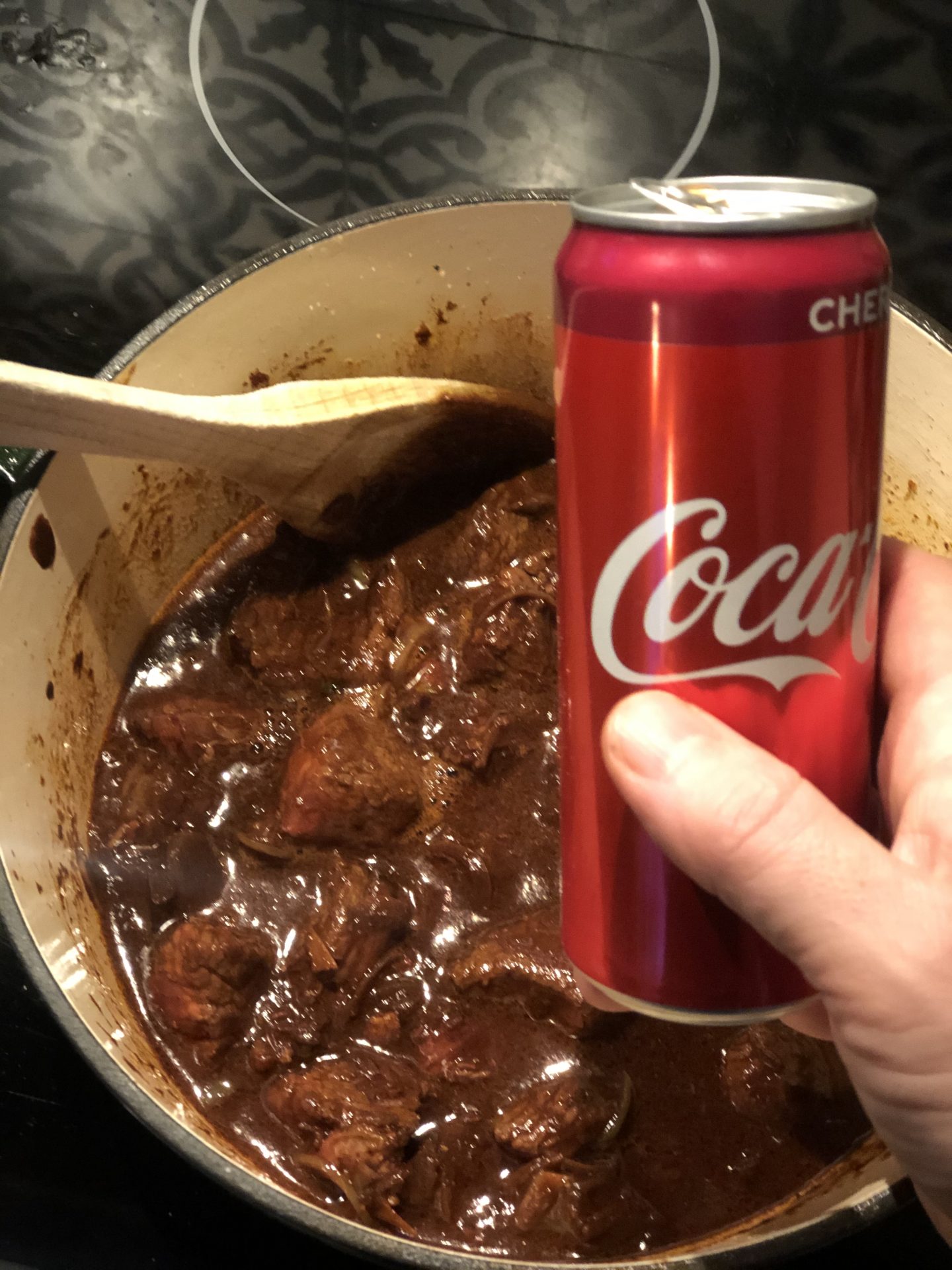 Sen tillsätter du en halv burk Cola (ej light, det är sockret man vill åt).