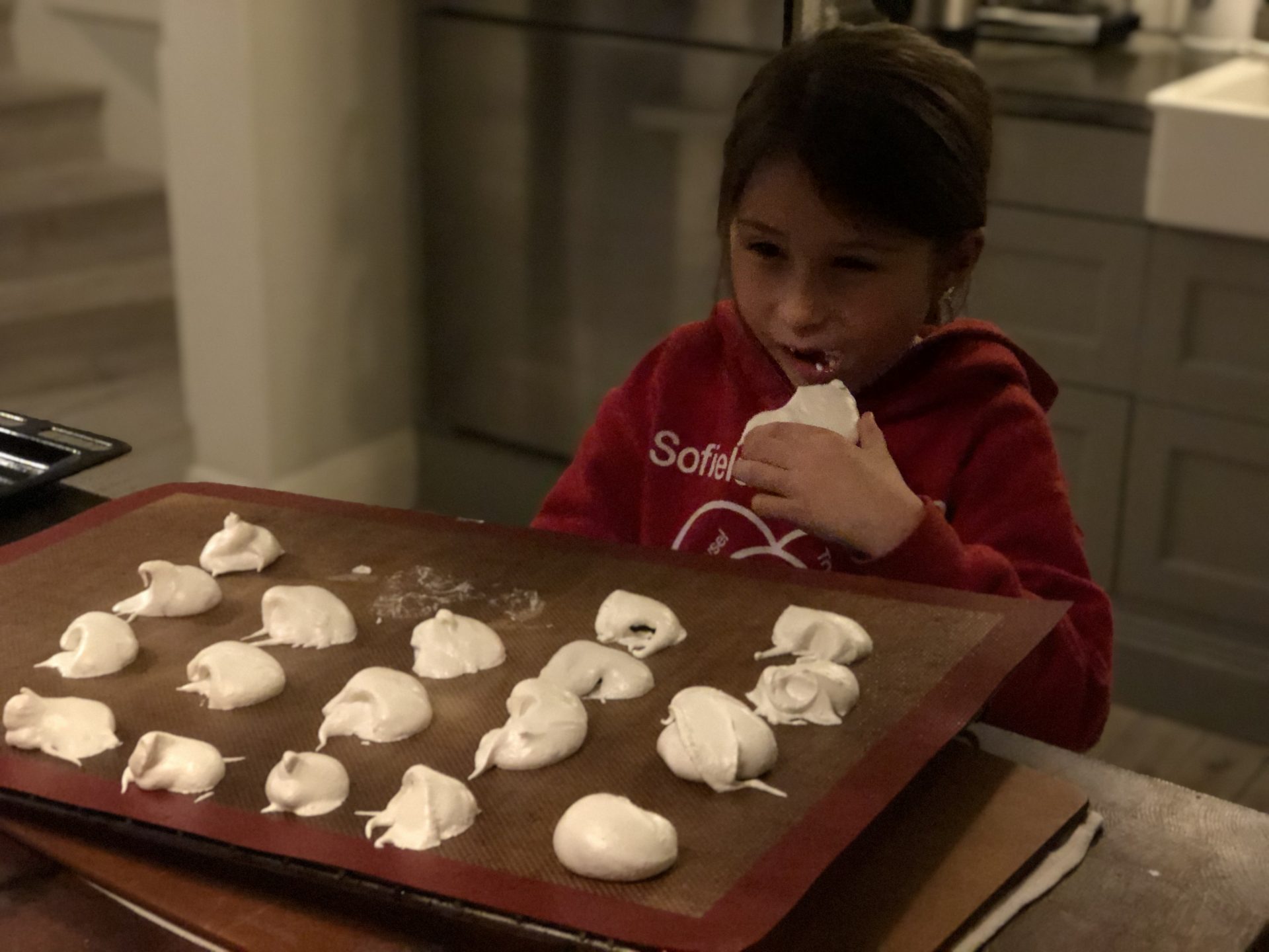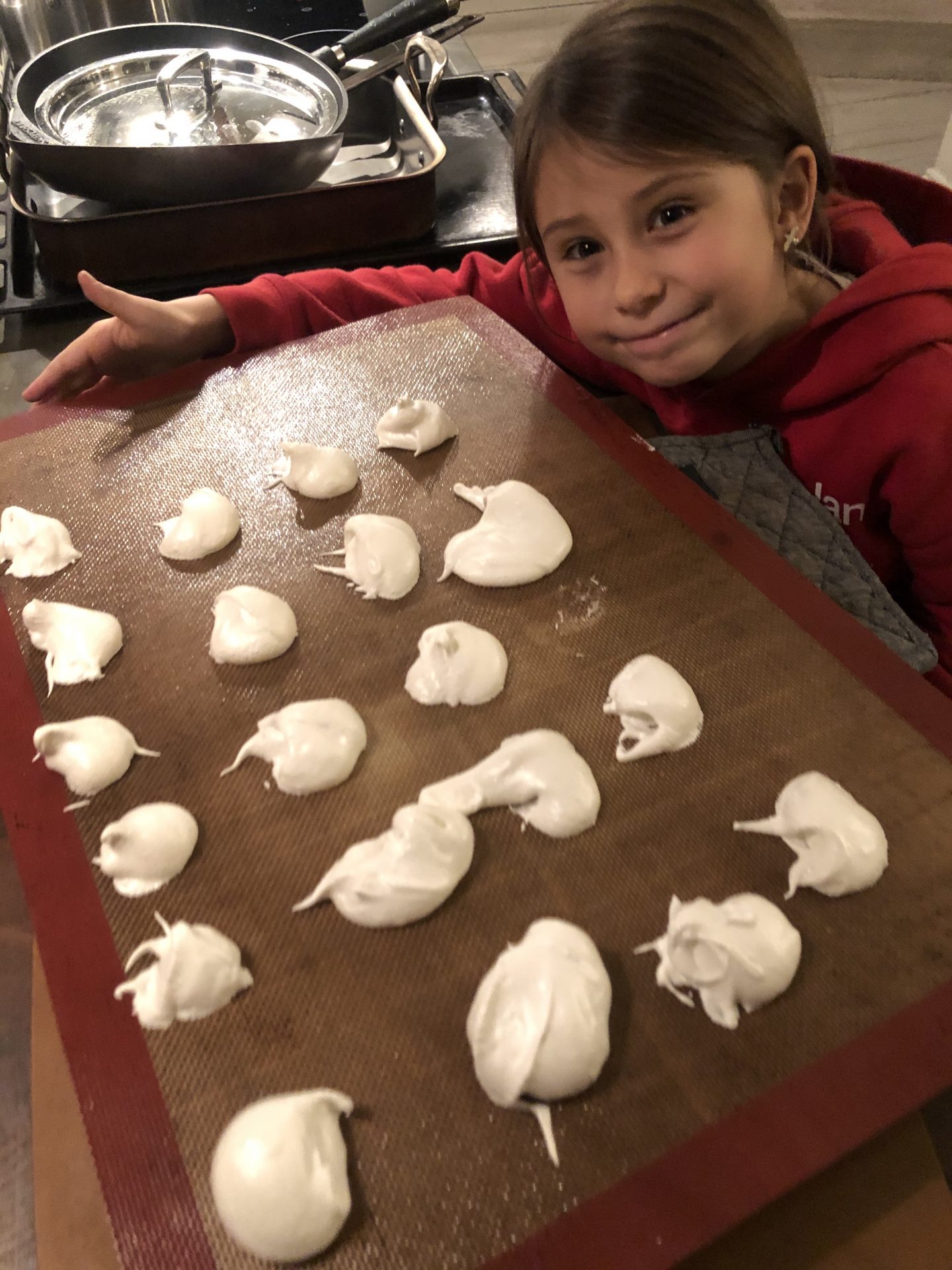 klicka ut 40 maränger på plåtar med bakplåtspapper eller en silikonmatta.