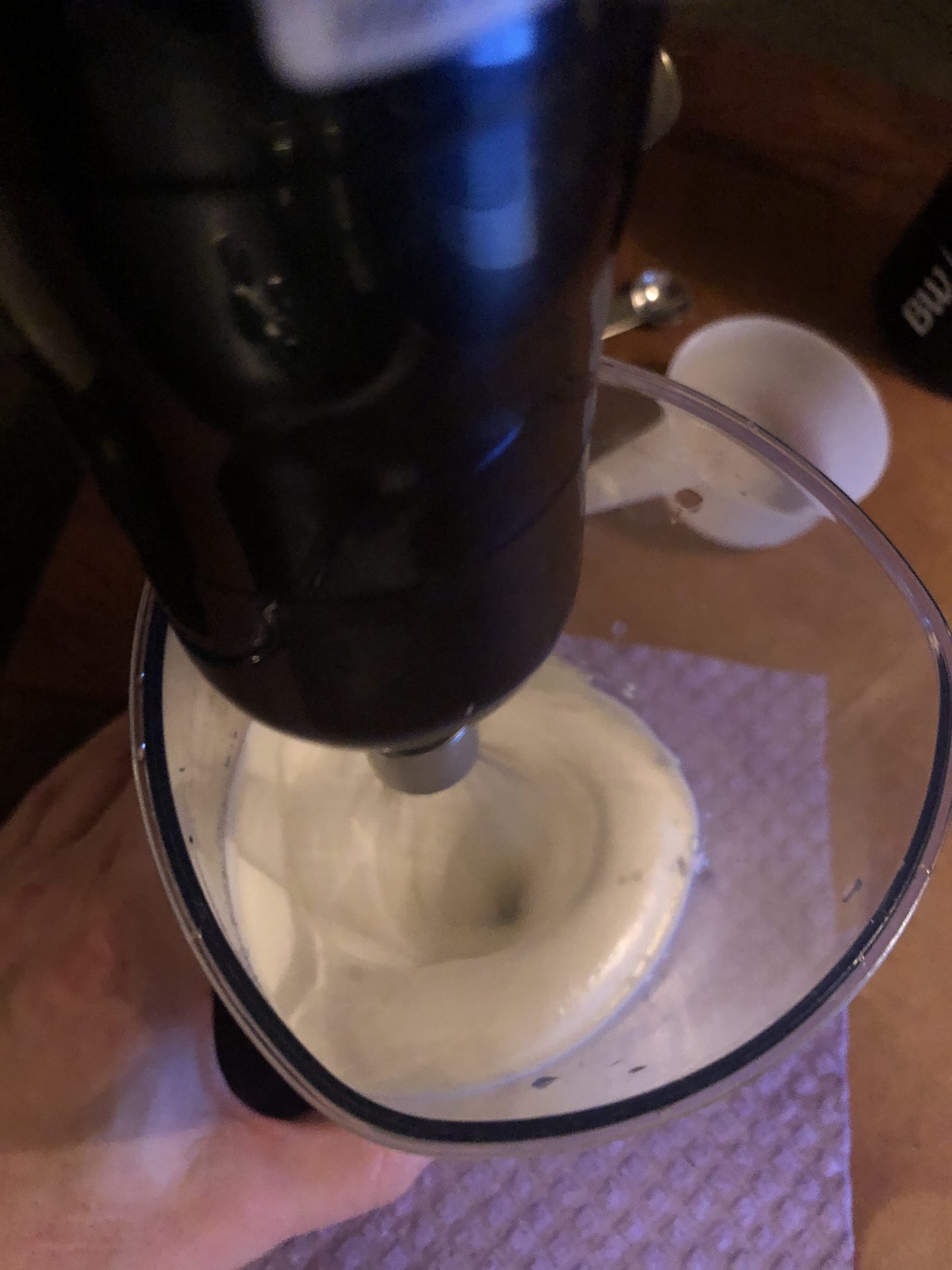 tillsätt sockret och ättikan och fortsätt vispa tills skummet blir fast.