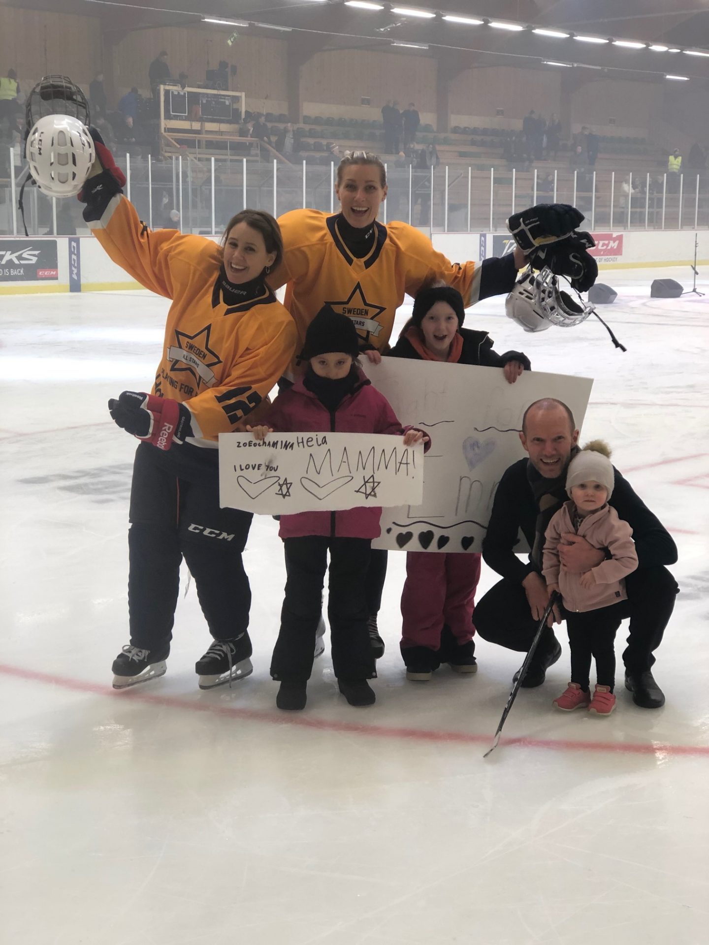 Det finaste av allt var att Emma hade fått en kort permis från sjukhuset i Hudiksvall och efter matchen rullades hon in till mitten av isen.