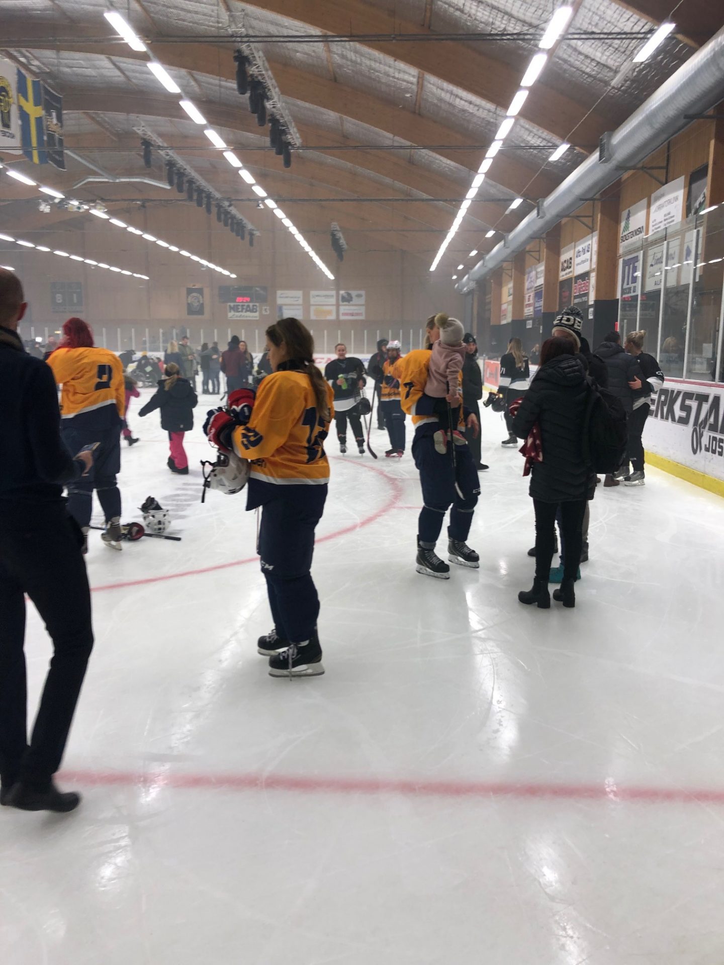 Efter matchen kom alla ut på isen. Kärleksbombardering i Alfta ishall