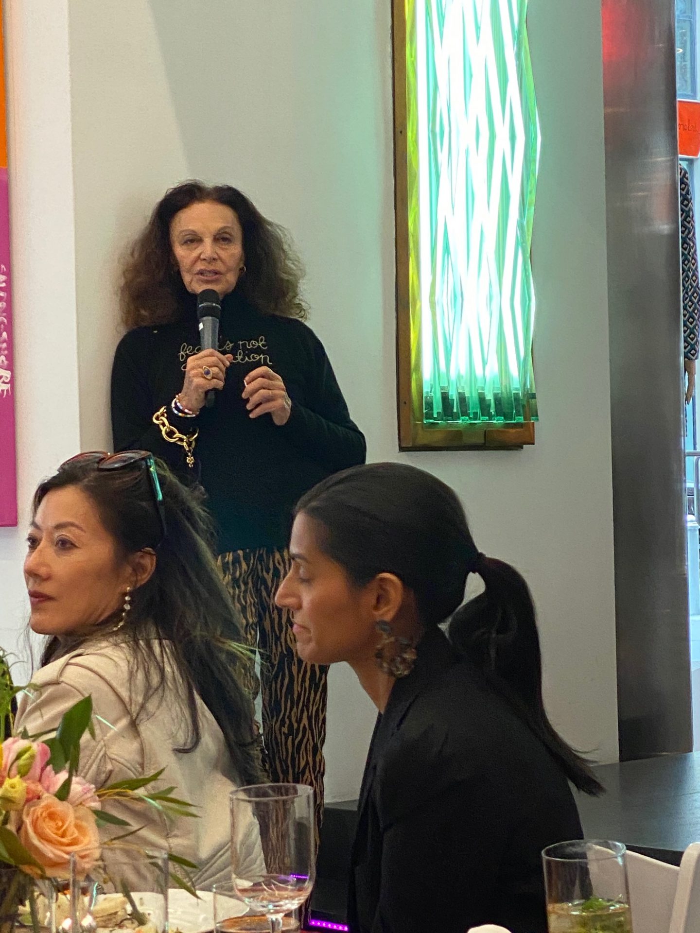 När jag var i Sverige fick jag ett sms av stylist-queen Angelina Jolin som frågade om vi ville komma på en välgörenhetslunch i New York med och hos legendaren och modedesignern Diane Von Furstenberg.