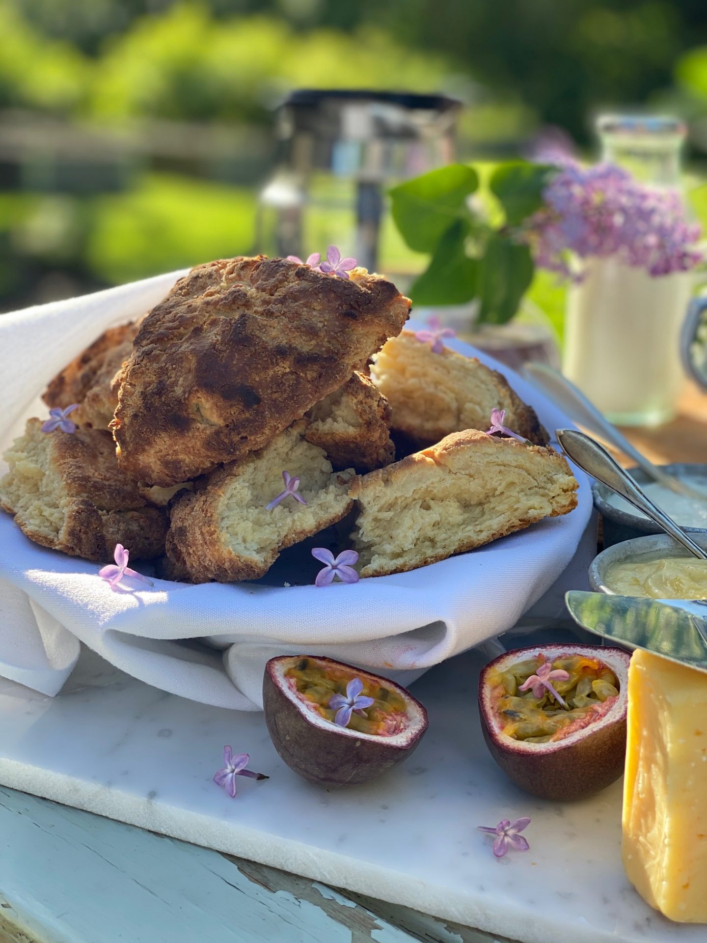 Lemon curd är ett måste till scones och Henrik som är en överambitiös jäkel hade snott ihop en egengjord nere i köket imorse.