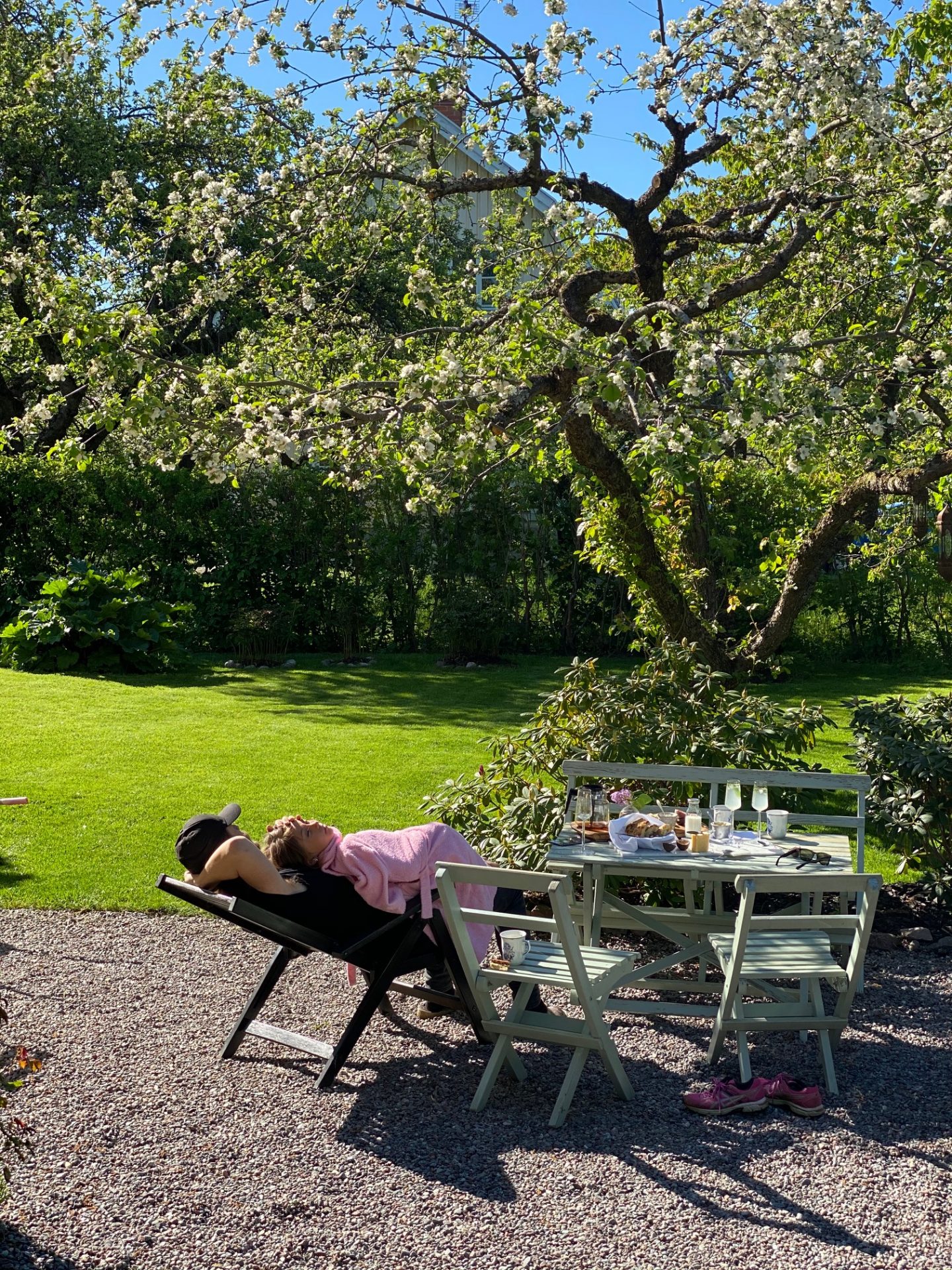 Eftersom det var väldigt soligt och varmt så flyttade vi ut hela kalaset till trädgården och dukade upp under äppelträdet.