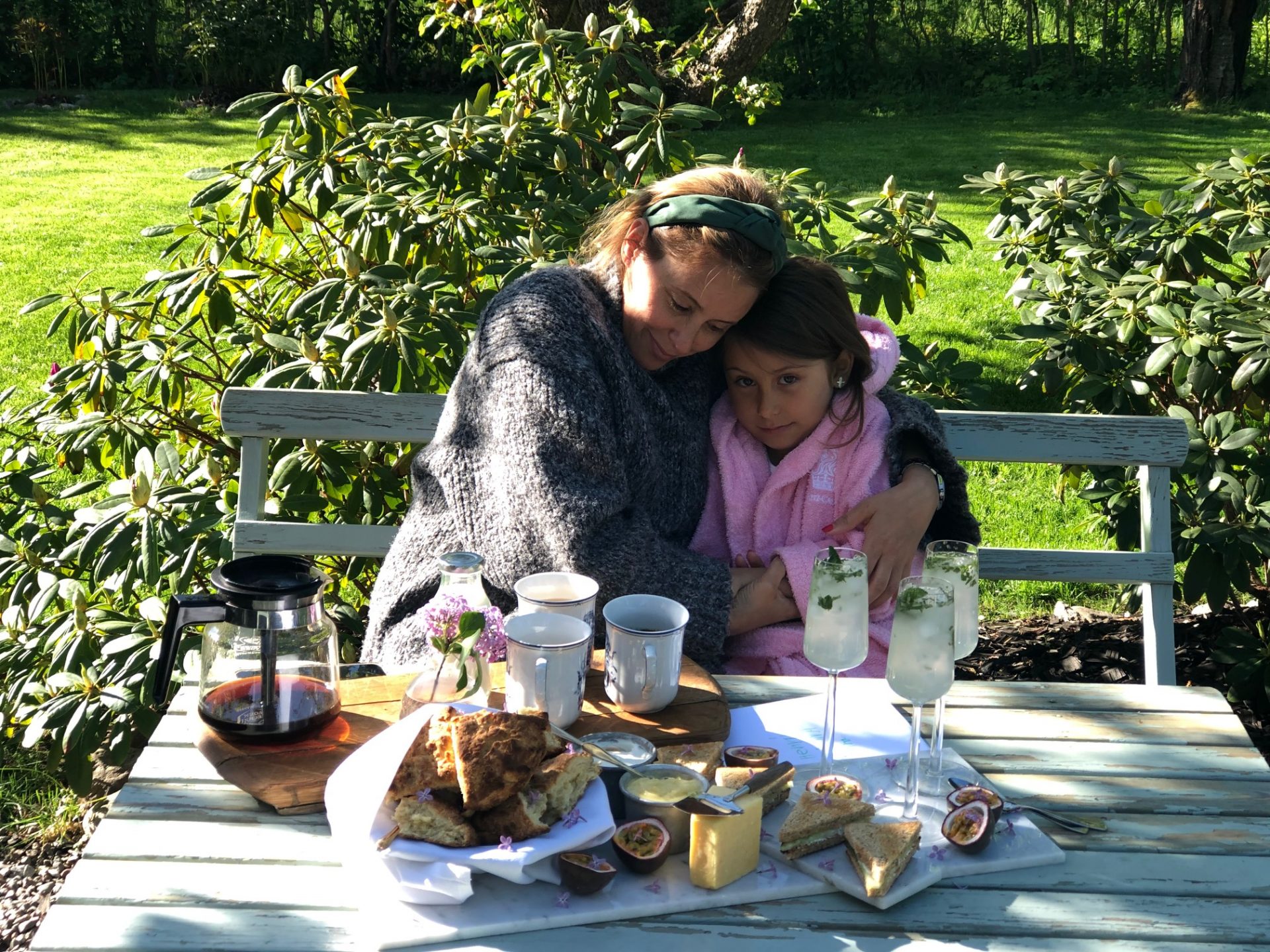 In i sovrummet kom dom med gurk och parmesansnittar, lemonad, nybakade scones, hemmagjord lemon curd, nybryggt kaffe och en mycket vacker teckning ritad av Amina.