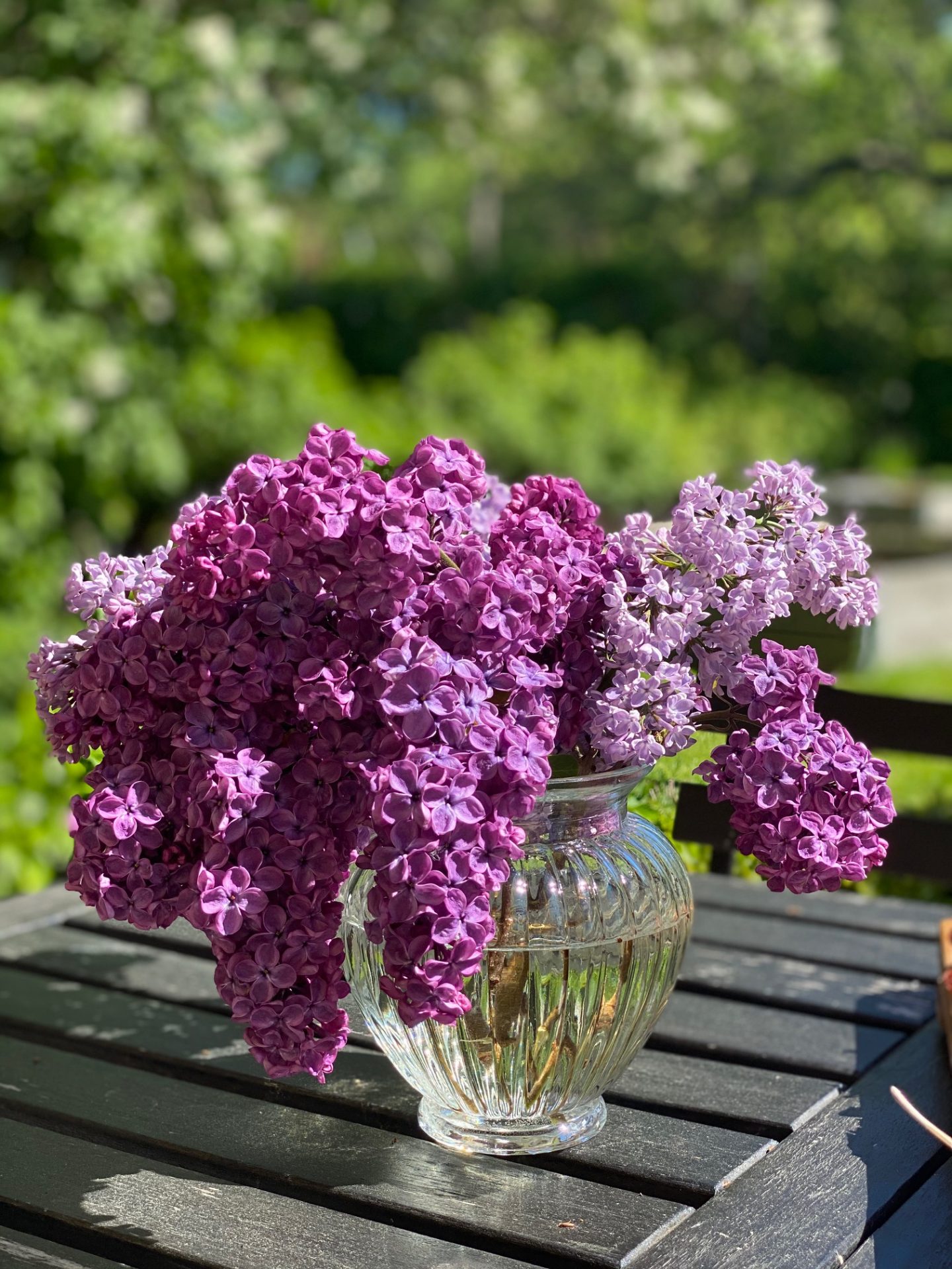 Jag har jättestora syrener utanför fönstret så i går kväll somnade jag med syrener både inne i sovrummet och utanför.