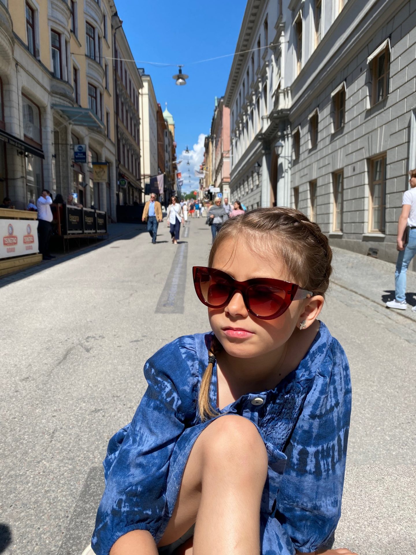 Amina och jag hittade en betongklump där vi satte oss och lapade sol.
