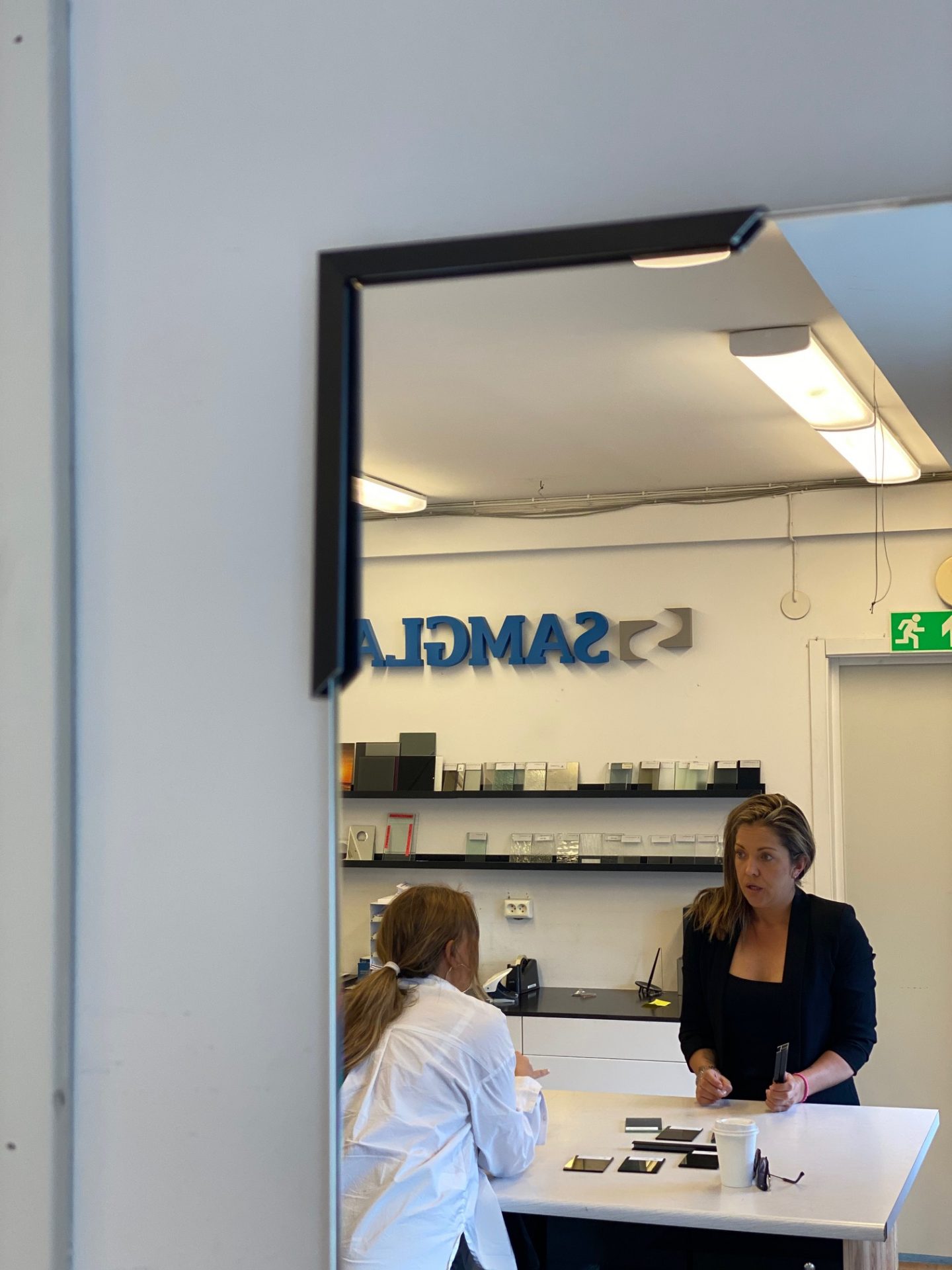 Här står Hayat och kollar olika färger på glas och speglar. Jag tror att hon valde bronsfärgat men det kan ändra sig, det ska man ha klart för sig.