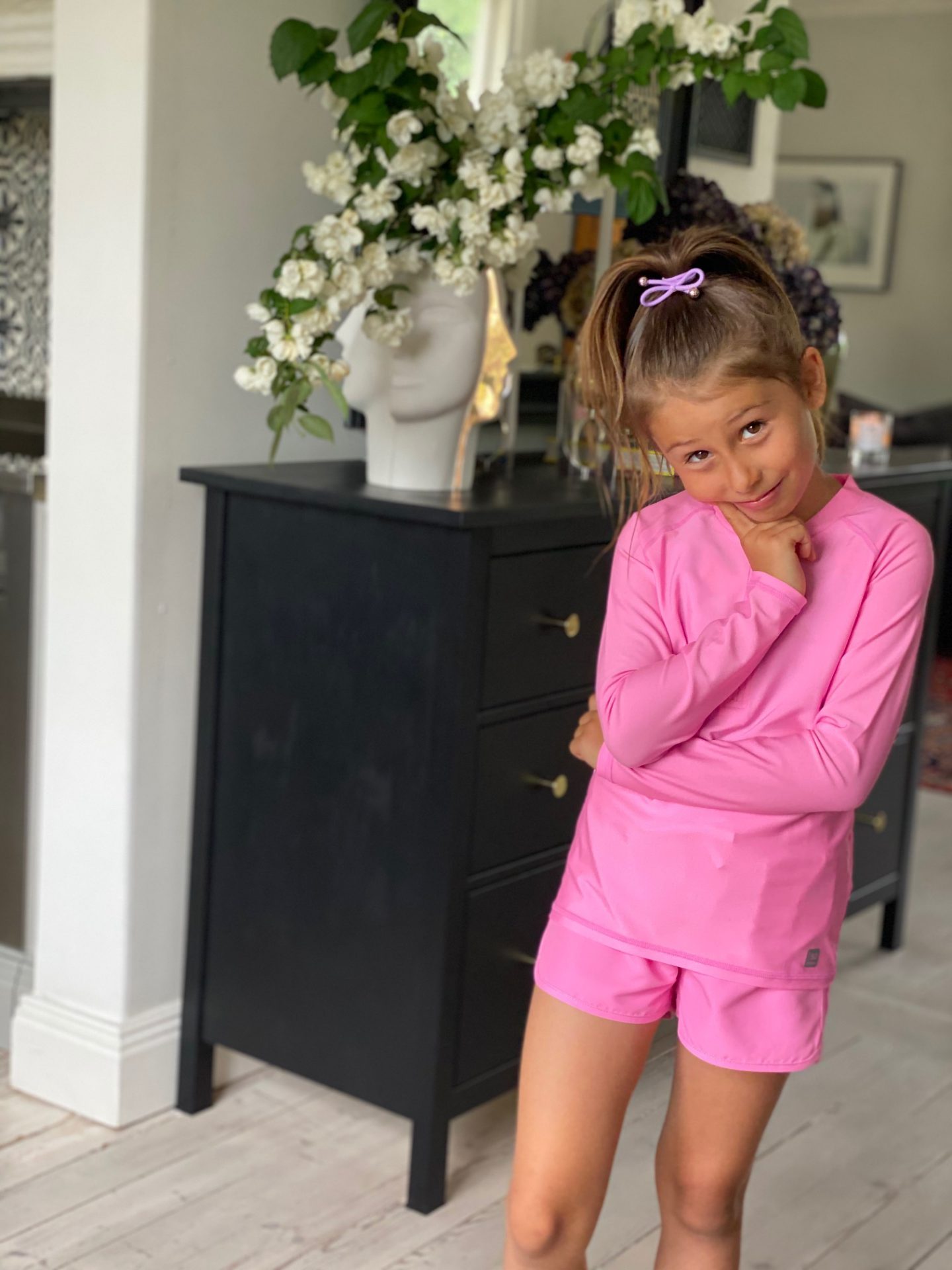 Shortsen på bilden är med UV-skydd för barn och är gjort i ett snabbtorkande material som andas och heter Unicorn Pink.