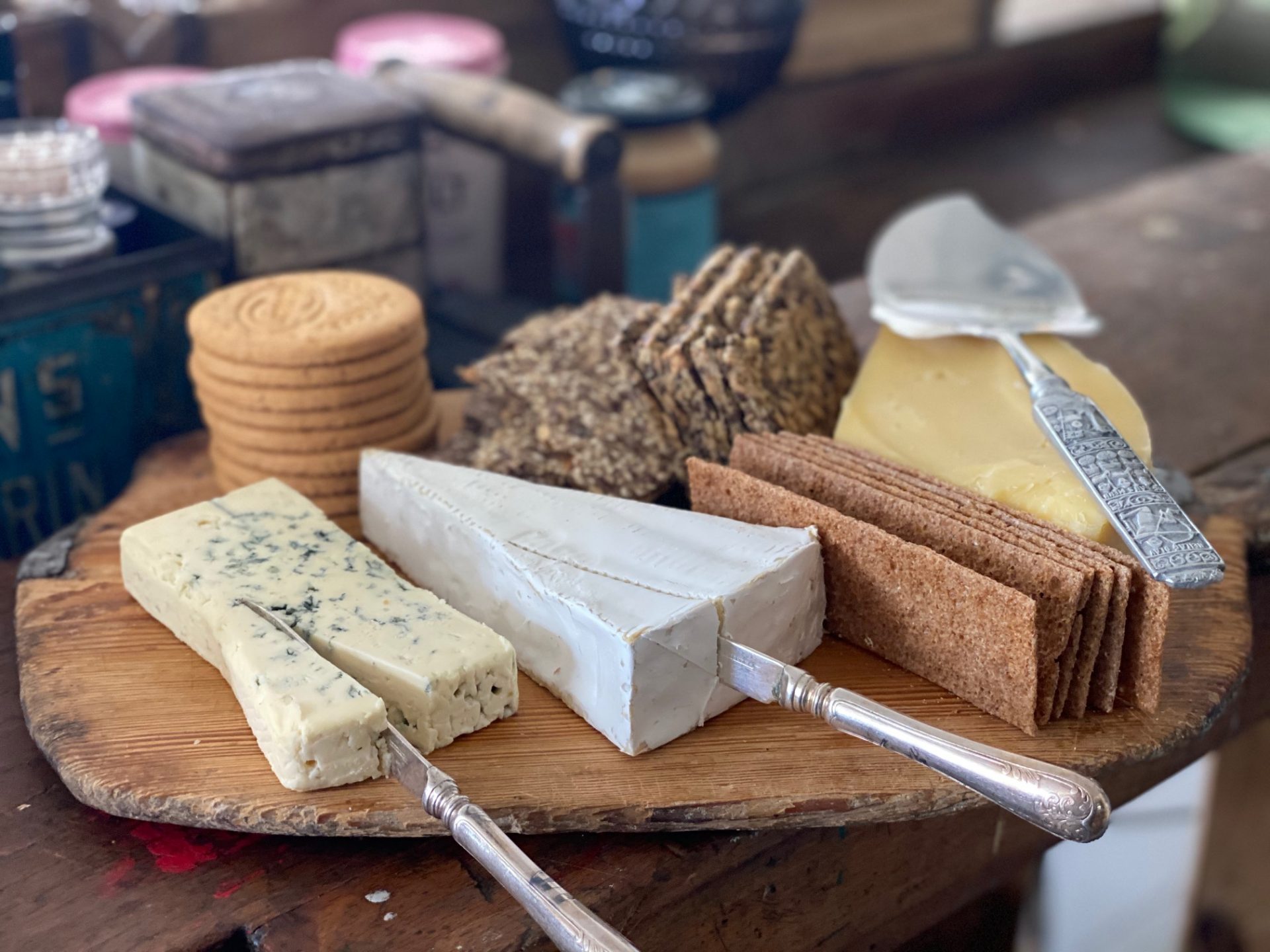 En underbar ostbricka och med en dösnygg träskiva som allt lagts snyggt på.