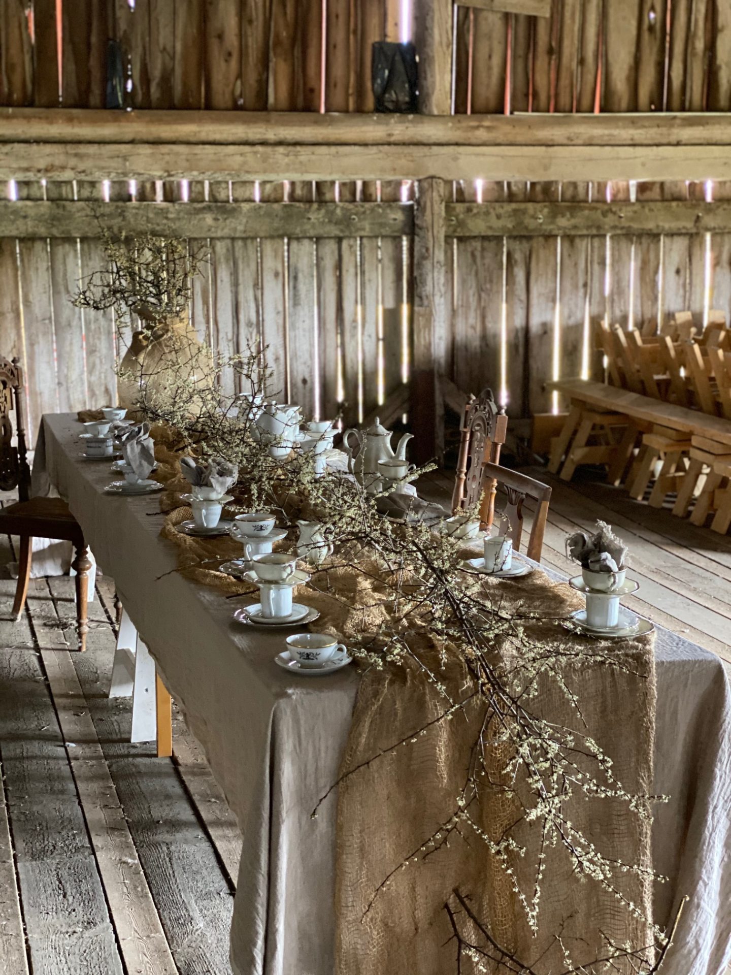 Utanför hennes hus finns ett gammalt stall som är perfekt att hyra för dig som vill ha en fest, bröllop, kalas whatever. Uppe på loftet hade hon dukat upp ett bord för en fotografering och det var så där perfekt vackert när ljuset från en öppning mot loftets tak lös in.