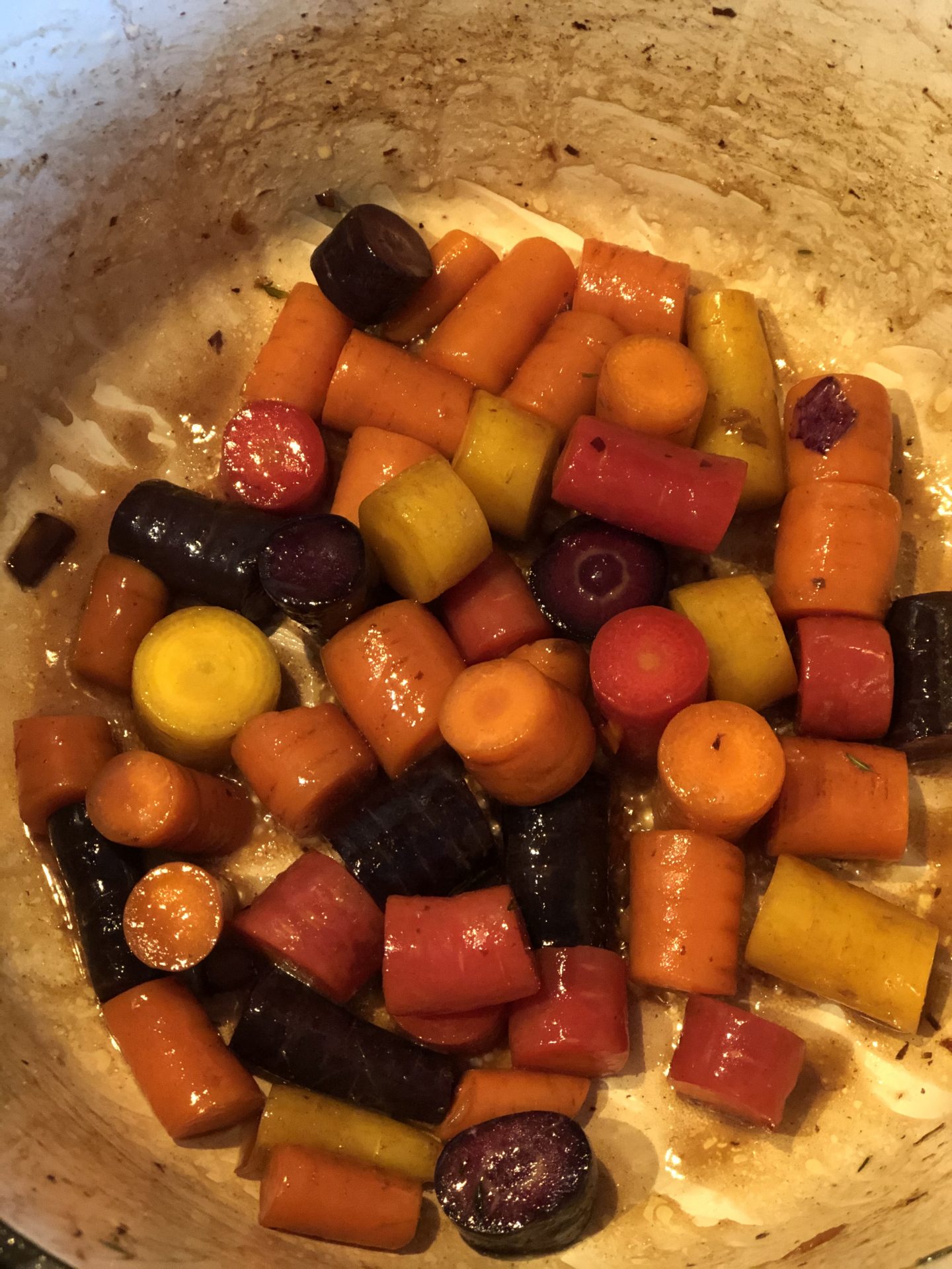 Morötterna sauteras i överblivet fett från sidfläsket.