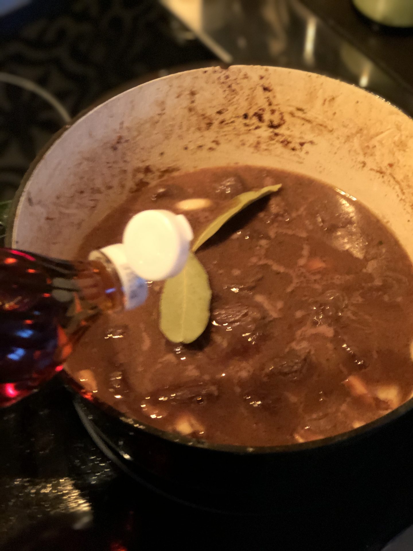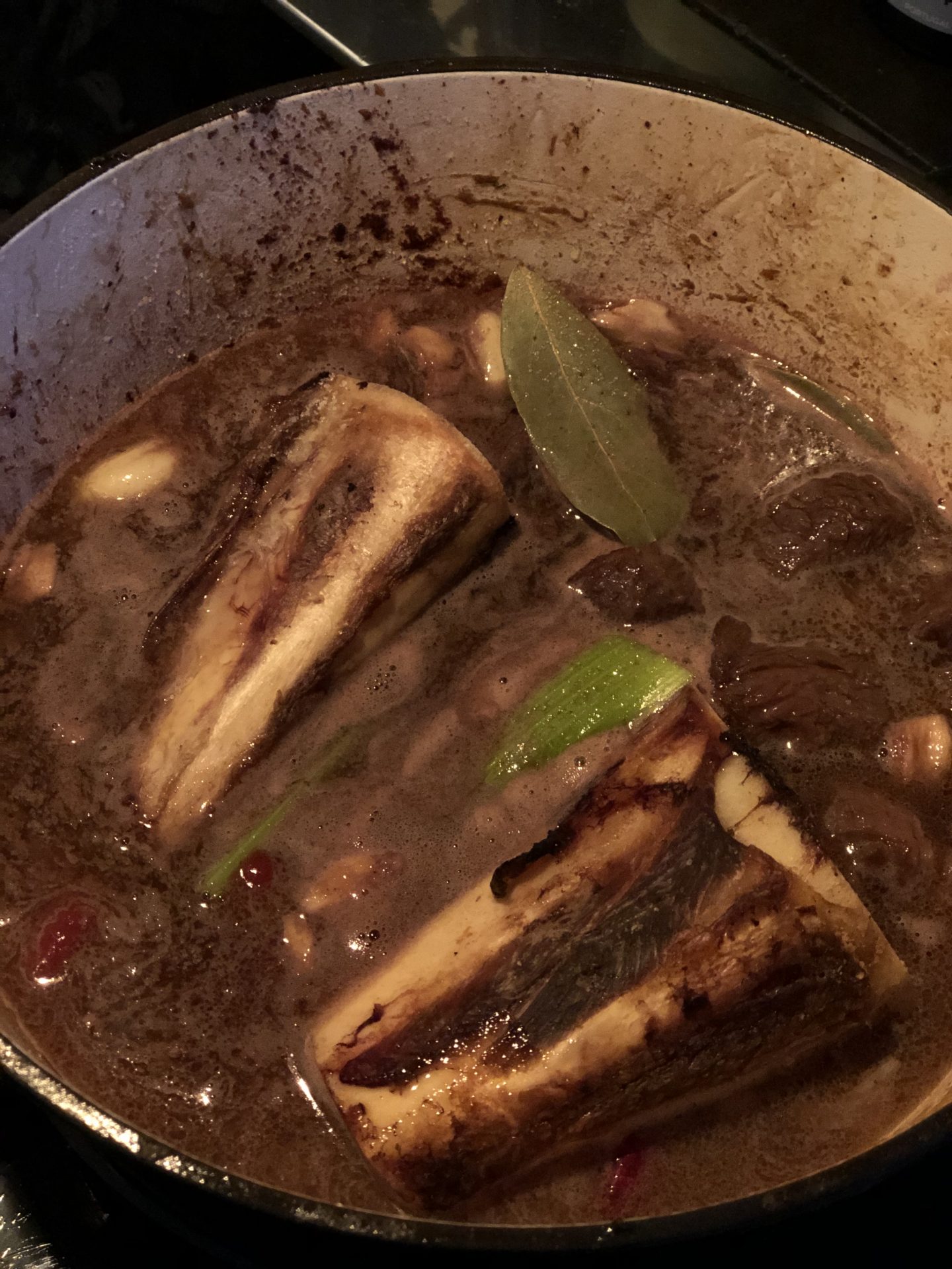 Det är i grunden en klassisk Boeuf Bourguinon, men ”trimmad” med lite saker som ugnsrostade märgben, porteröl, kaffe och fisksås. Vi använder en gjutjärnsgryta (eller en sk dutch oven) och låter ”Boeuffen” puttra klart i ugnen på låg temperatur under några timmar tills köttet är riktigt riktigt mört. Det finns inget min mellandotter Yaz älskar mer och när hon bodde i New York så var detta (och falukorv) det hon saknade mest. Vill man bo på Manhattan så får man offra ett stort kök för det är bara att fetglömma.