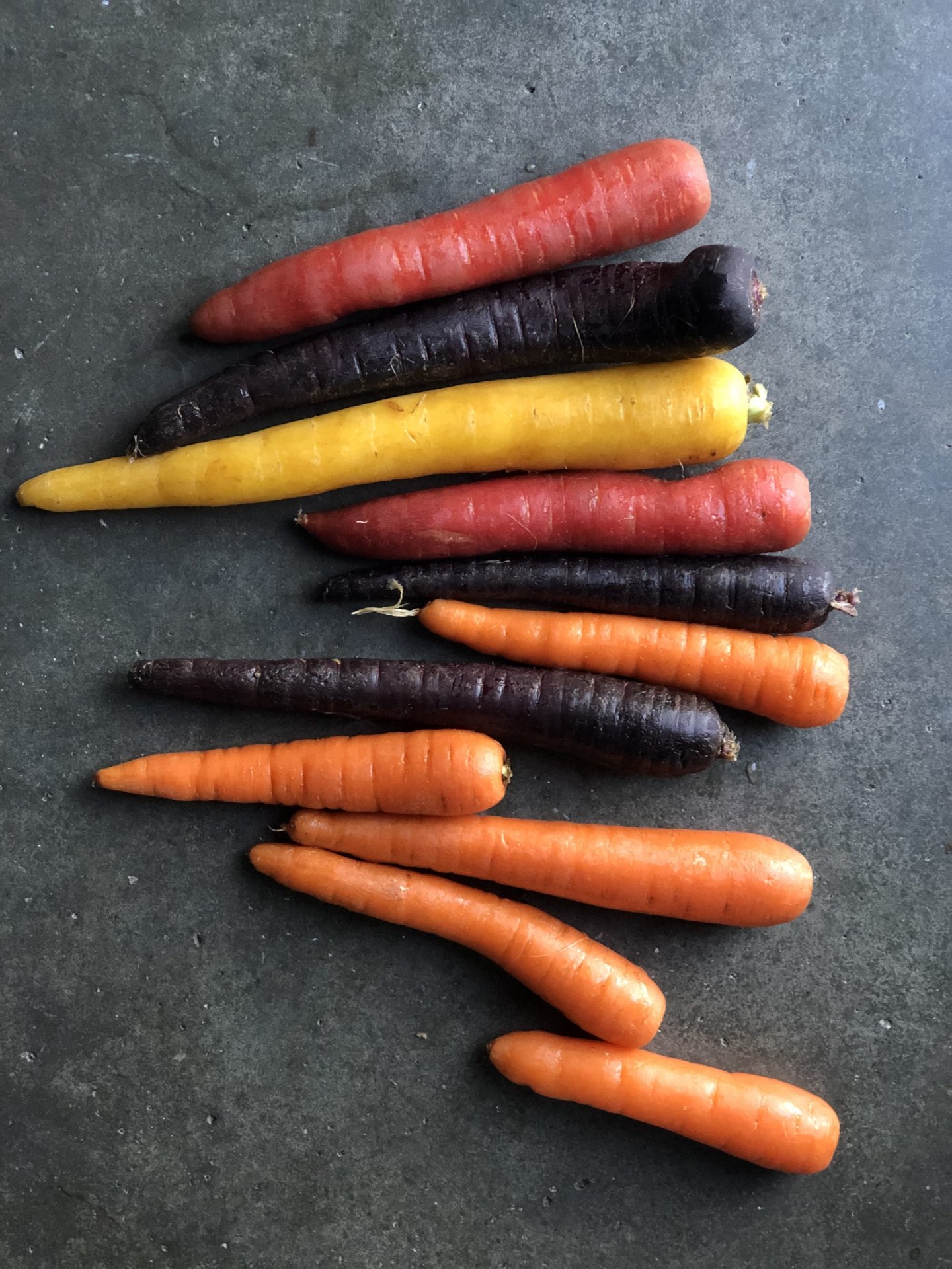 Morötter i olika vackra färger. ”Originalmoroten” inte är orange utan lila, det är lite sån fakta som jag går runt och håller inne med.