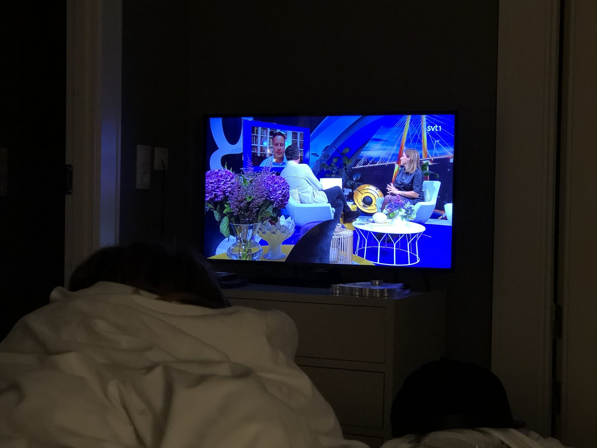 Jag åkte från min födelsedagstjej och Henrik på Elite inne i stan till SVT vid 13 tiden. Just denna dag hade jag också heldagsföreläsning så jag satt nån timme i lobbyn och sen i taxin och försökte hänga med via Classroom.