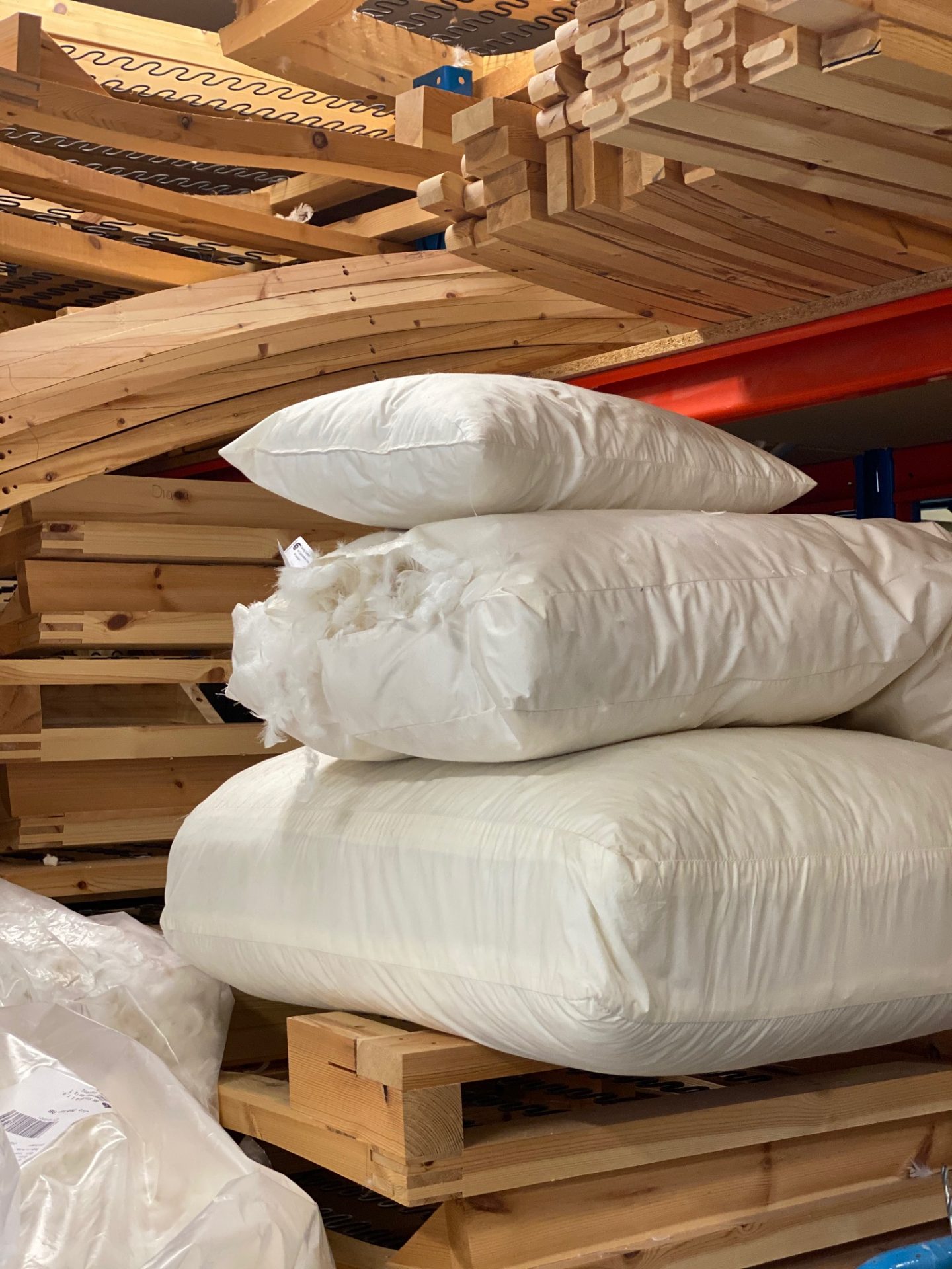 Stoppningen i varje möbel väljs av den som beställer och jag valde en sits med ganska mycket kallskum så att soffan håller sin form och sen tyckte Claes att ryggkuddarna skulle vara mer fluffiga med dun osv.