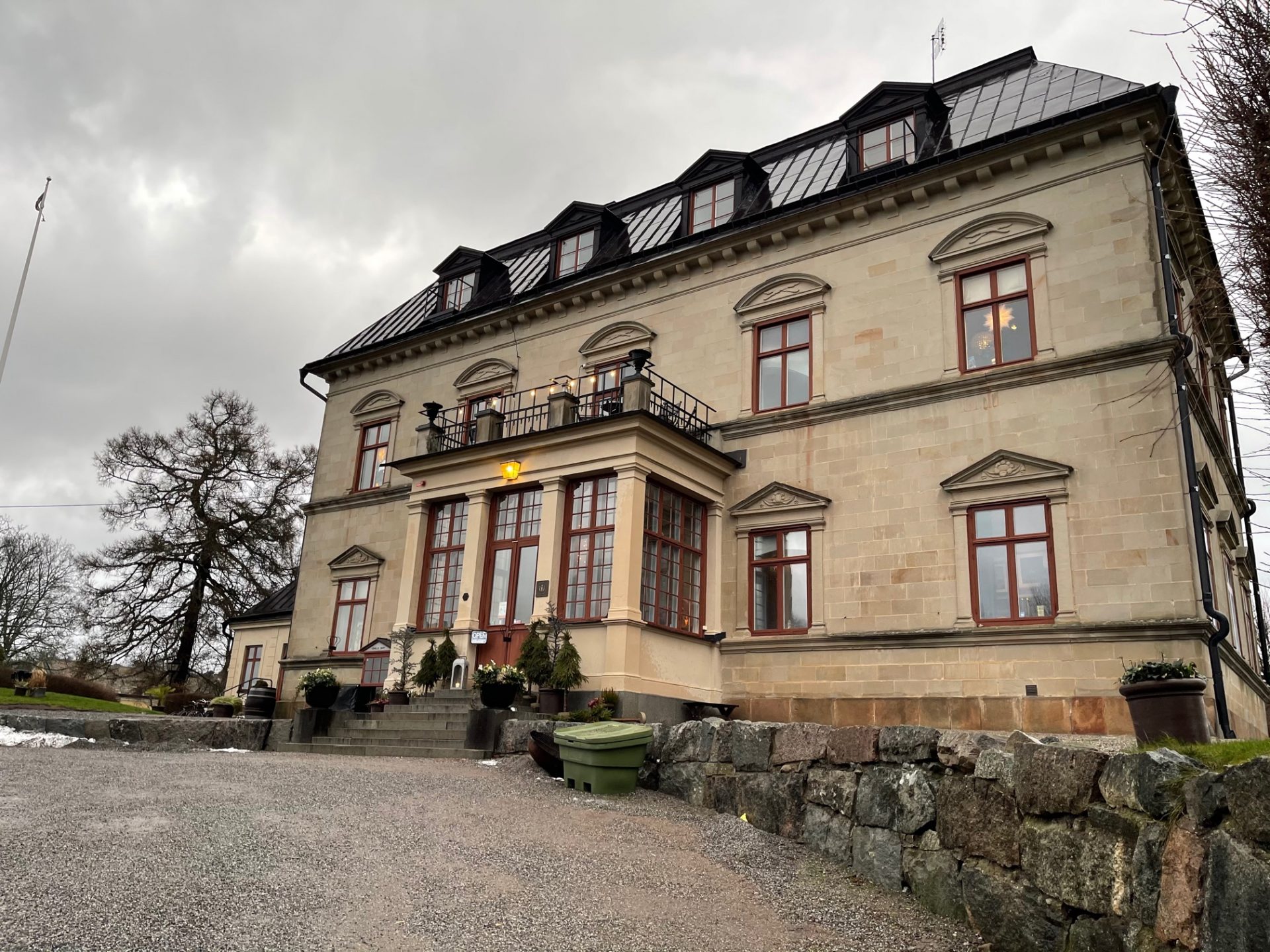 Jag och Lena började med varsin kopp te uppe i huvudbyggnadens rosa rum som ligger på andra våningen. I det rummet satt jag och jobbade i med min byråchef Linda och det är ett rum som är nåt alldeles särskilt. Åker du som läser detta till Görväln Slott för att ha en Workation så passa på att sitta i det rosa rummet, där flödar kreativiteten alldeles särskilt mycket.