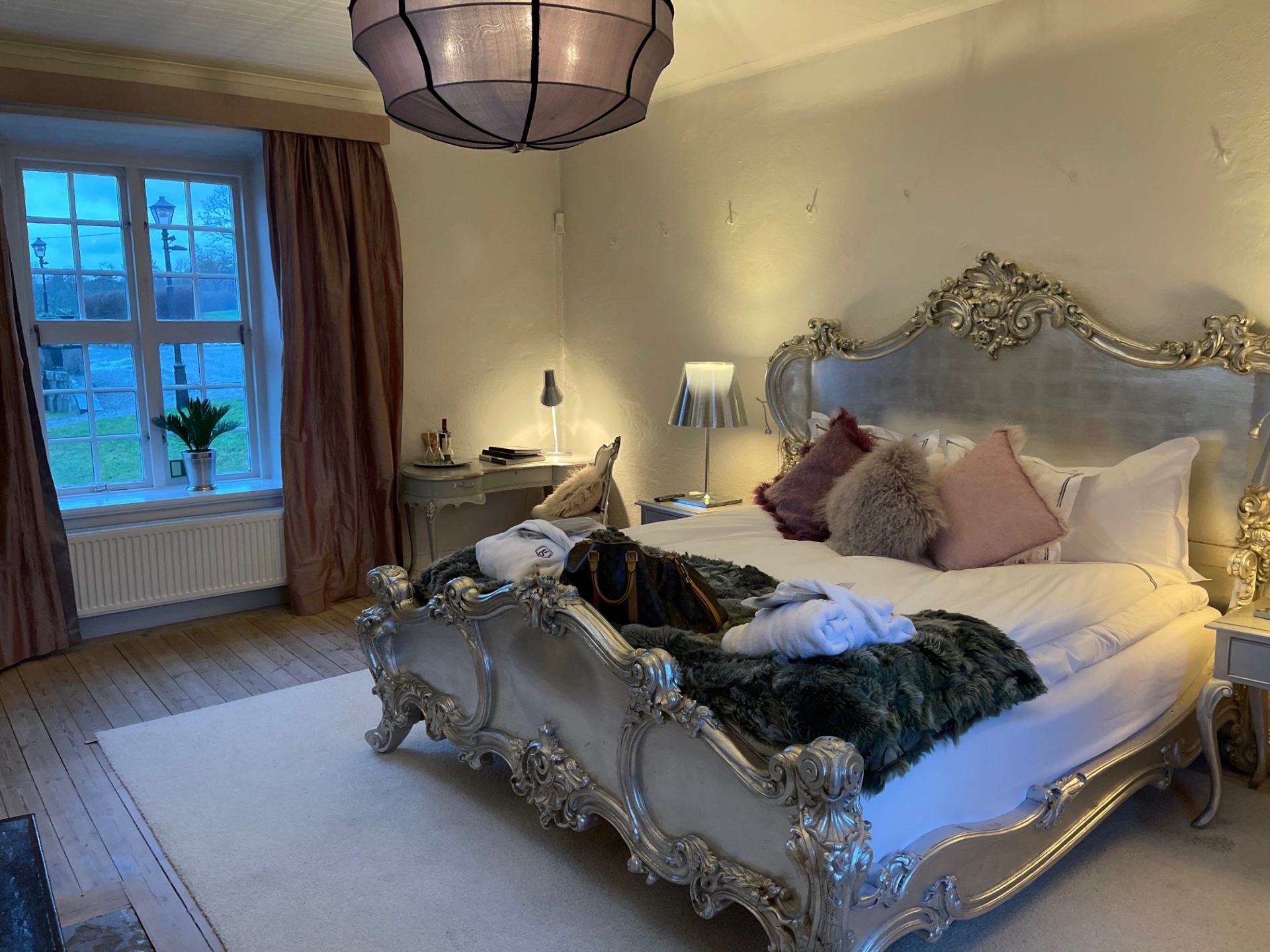 Rummet var otroligt vackert och smakfullt inrett. Det är en konst att renovera och skapa nåt utifrån en arkitektur från slutet av 1600-talet. Jag som ääälskar gamla svenska slott och herrgårdar njöt för fulla drag när jag satte nyckeln i det stora huset utanför slottet och när vi gick i den gamla trappen som gick upp till vårt rum.
