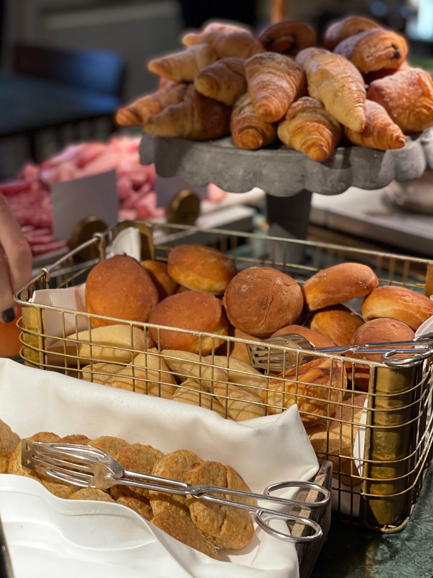 I morse när vi vaknade väntade en uppdukad buffe av en massa gott och framför allt nybakade scones, croissanter mm. Jag äter egentligen inte frukost men ser den ut som den som dukats upp imorse så kan jag gå flera vändor.