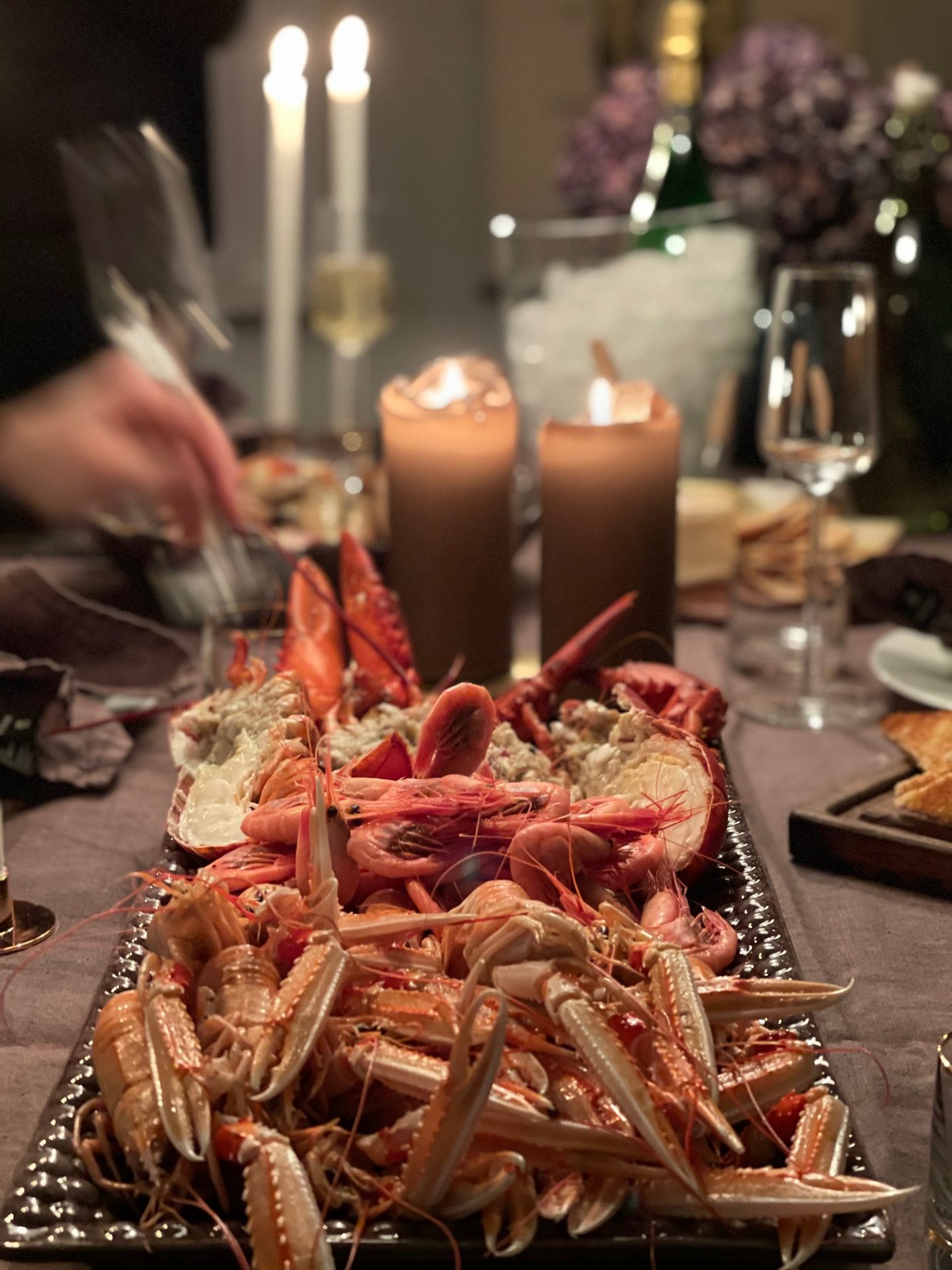 Varje gång jag serverar skaldjur så är jag livrädd att det ska bli för lite, att man nån inte ska bli mätt så jag vill gärna fylla ut med en massa ostar och rostat bröd med kaviar och annat.