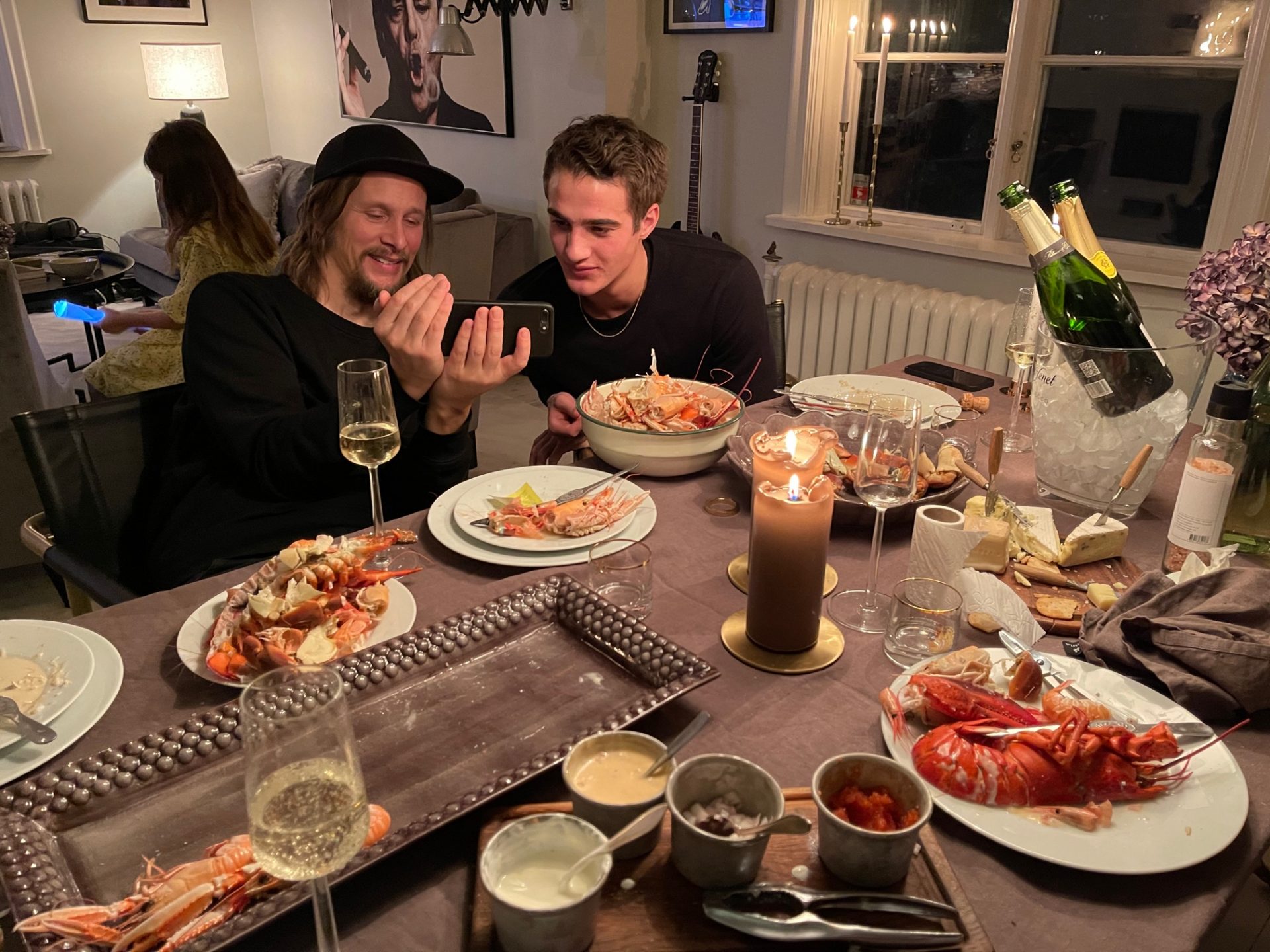Yasmine hann hem innan mig och tog emot budet med skaldjur (för dom vill man gärna inte ha stående utanför dörren i minusgrader). Jag kom strax efter och satte igång att panik-duka.