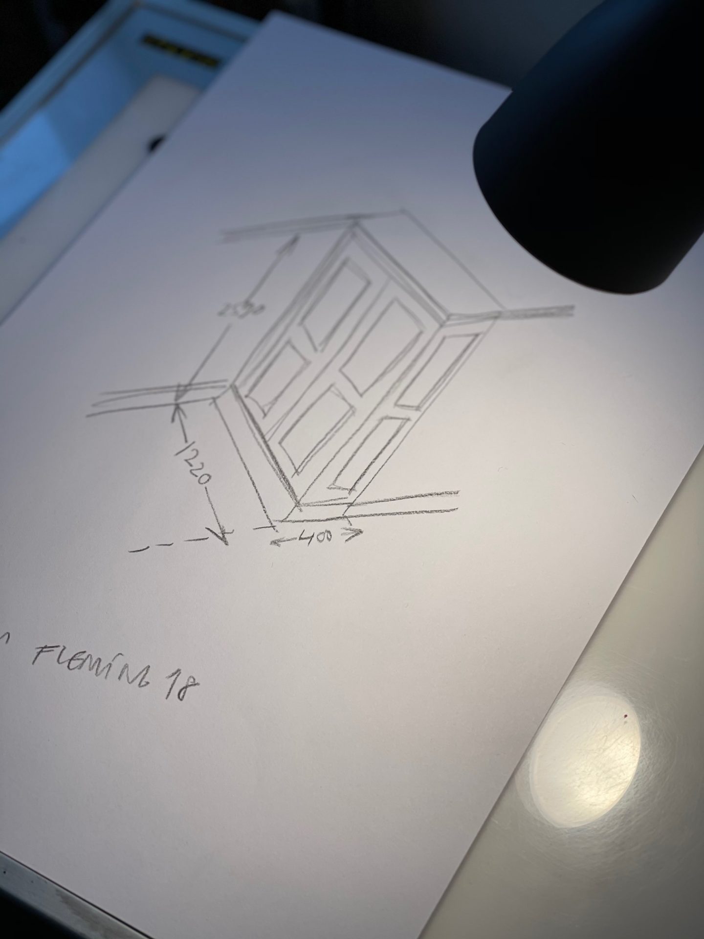 Här är Henriks ritning på möbeln. Den blir inte lika djup som militärskåpet men tack vara att den blir så hög så kommer den nog att rymma mer. Min förhoppning är att även få plats med tallrikar och sånt så det underlättar när man ska duka.