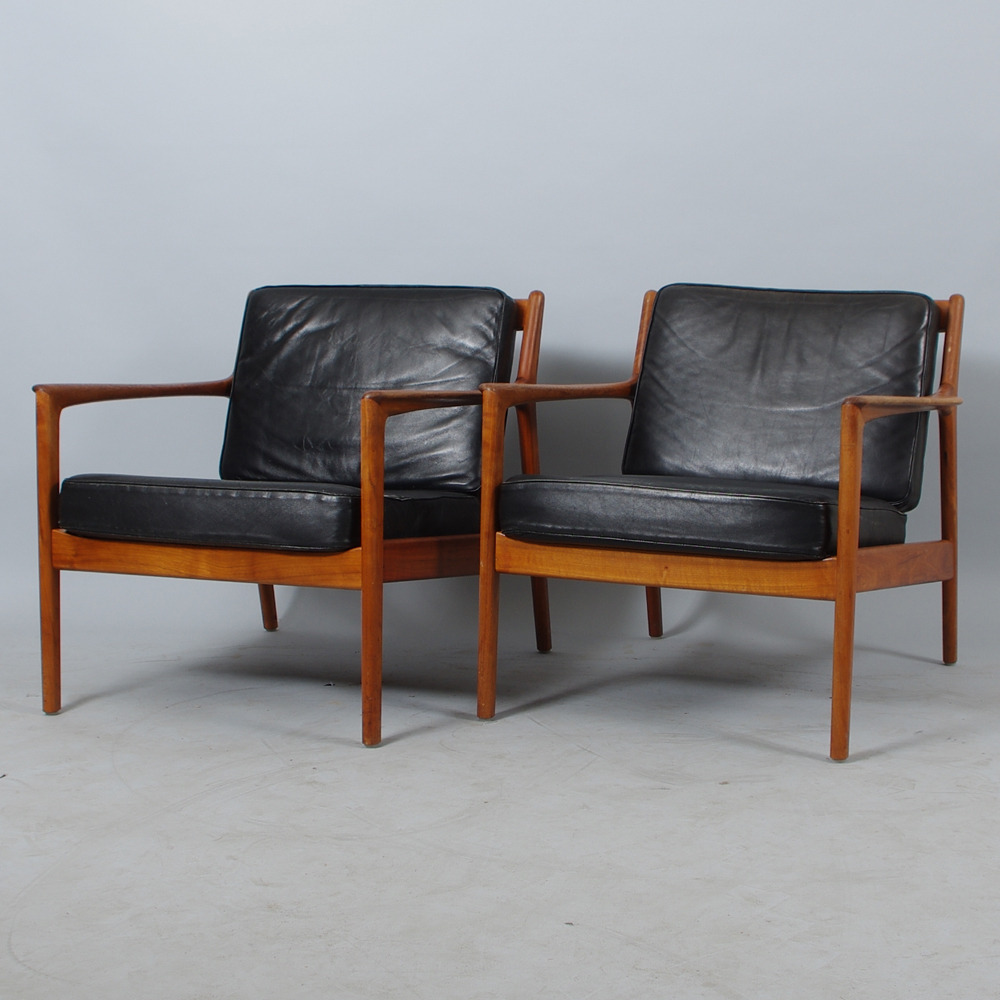 Svart matt skinn och en liten mörkare trä ram som också är lite matt. Kan det vara nåt?