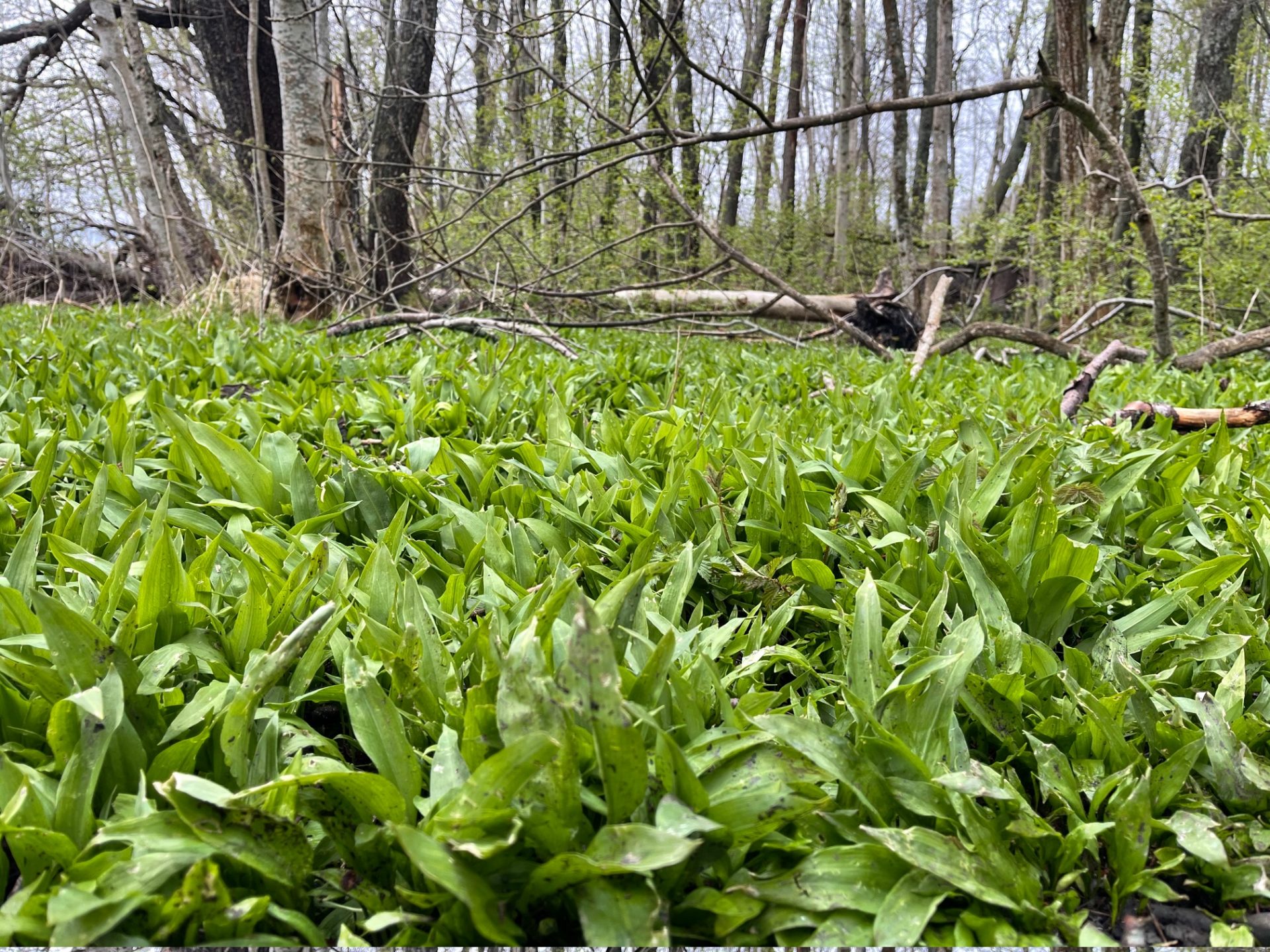 Så till sist gick vi till stället Susanne pratat om och enligt henne så var det en hel fotbollsplan med ramslök. Hon hade helt rätt förutom att det nog snarare var 2 fotbollsplaner i storlek. Ramslök är ju inte döenkel att odla och vi har verkligen försökt så detta var ju en dröm.
