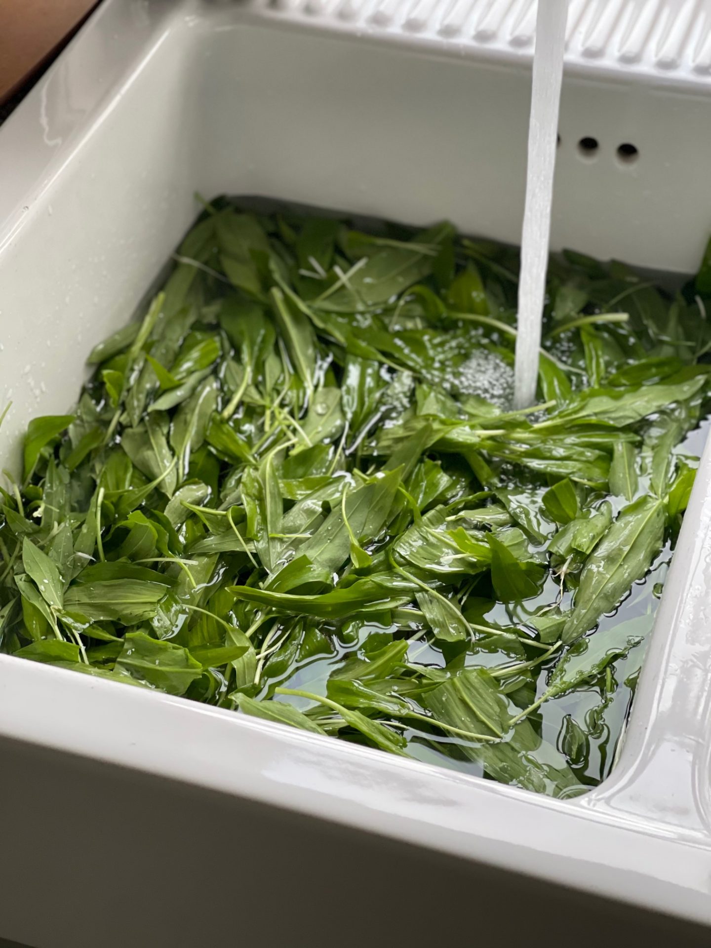 Sen separerade jag alla blad som hade rötter och tvättade dom ännu mer noggrant eftersom äggen oftast sätter sig i jorden.