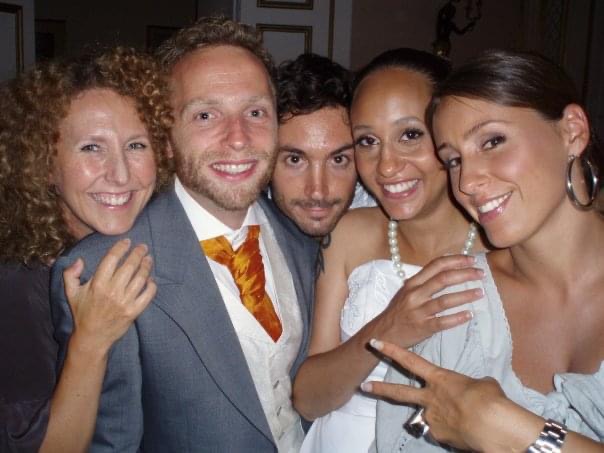 Här är ännu en bild på oss i gamla SVT gänget och detta är på Johans bröllop med hans underbara och vackra fru Rebbie. I mitten står vår vän Malik, det gör ont att se den här bilden. Vi hade så roligt den här kvällen, allt var liksom problemfritt. Malik vann några år senare en Oscar för filmen ”Searching for Sugar man” och senare valde han tyvärr att ta sitt liv.