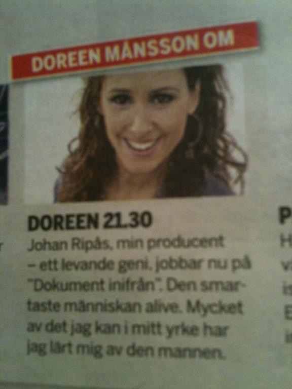 Jag skulle kunna skriva en bok om det vi gjorde på Doreen 21.30 men det får bli en annan gång. Roligt hade vi i alla fall och vi satsade stenhårt på att lyfta nya perspektiv och personer. Det lyckades vi med, tillsammans med vår projektledare Per Rådelius.